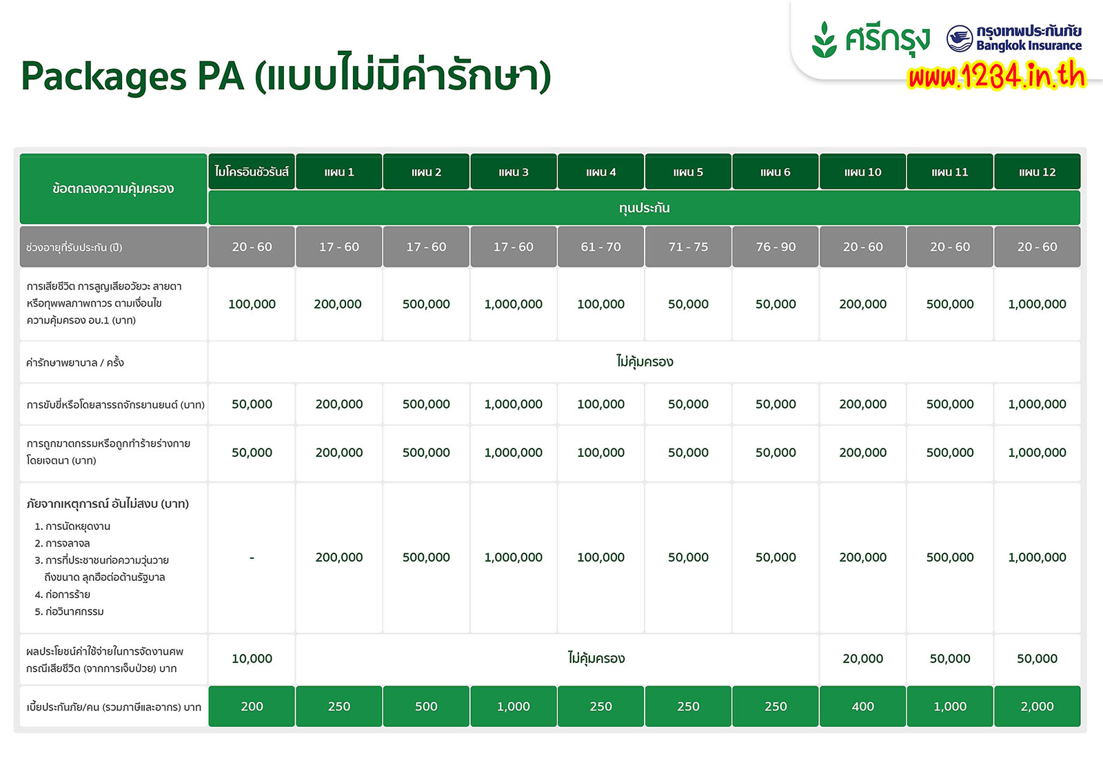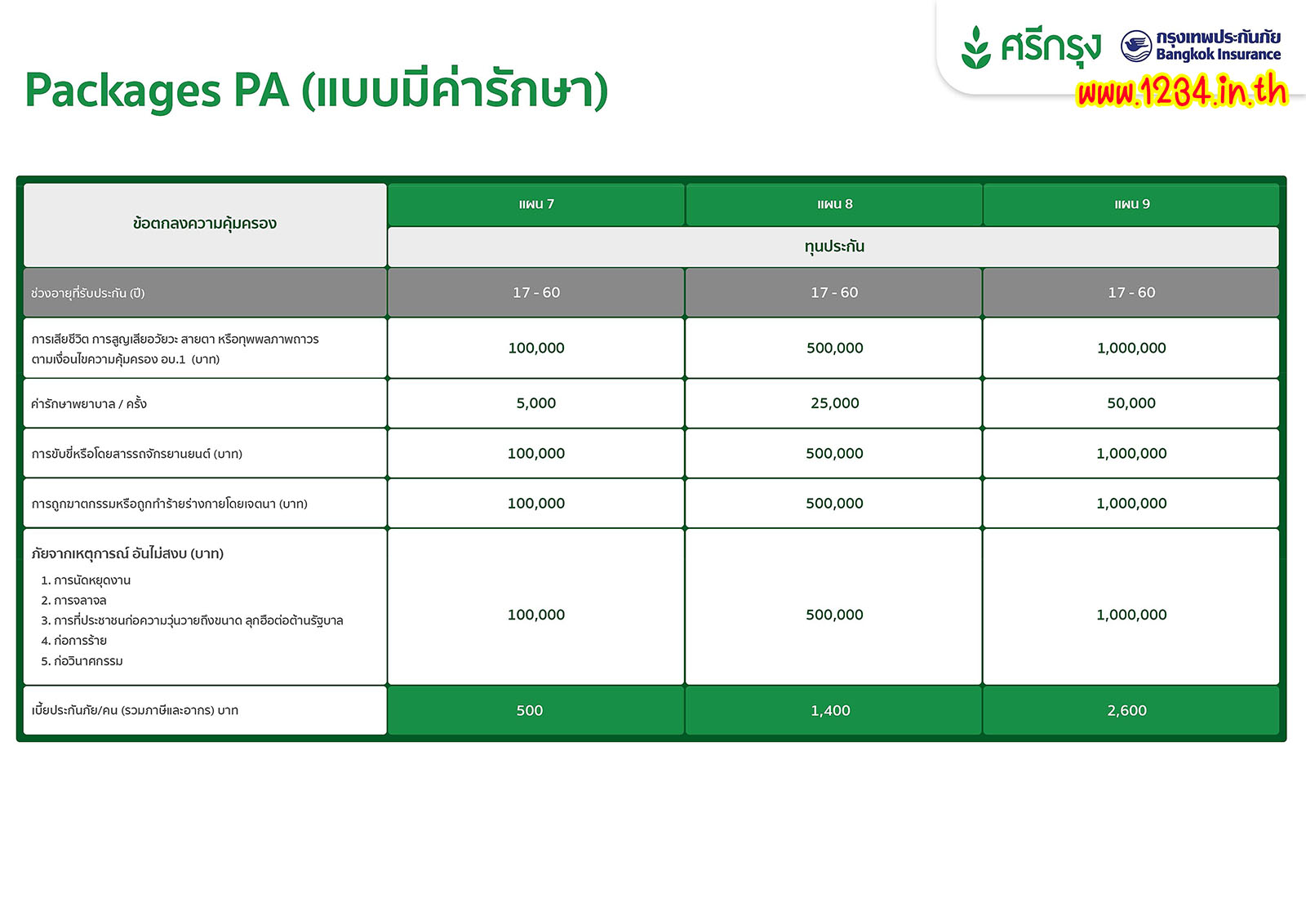 แพ็คเกจนี้รับอายุ 17 ปีถึงสูงสุด 60 ปี ทุนประกันภัยกรณีเสียชีวิตจากอุบัติเหตุ