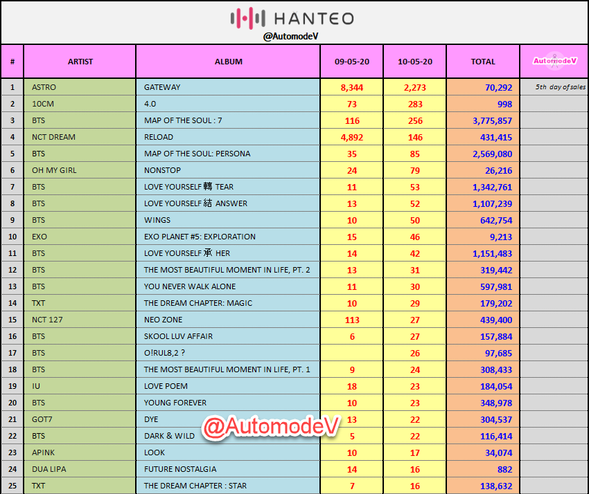 ยอดซื้ออัลบั้มจากชาร์ต HANTEO 9 - 10 พฤษภาคม 2563