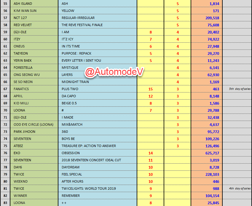 ยอดซื้ออัลบั้มจากชาร์ต HANTEO 18 - 19 เมษายน 2563 + APINK + 2020 1st Week