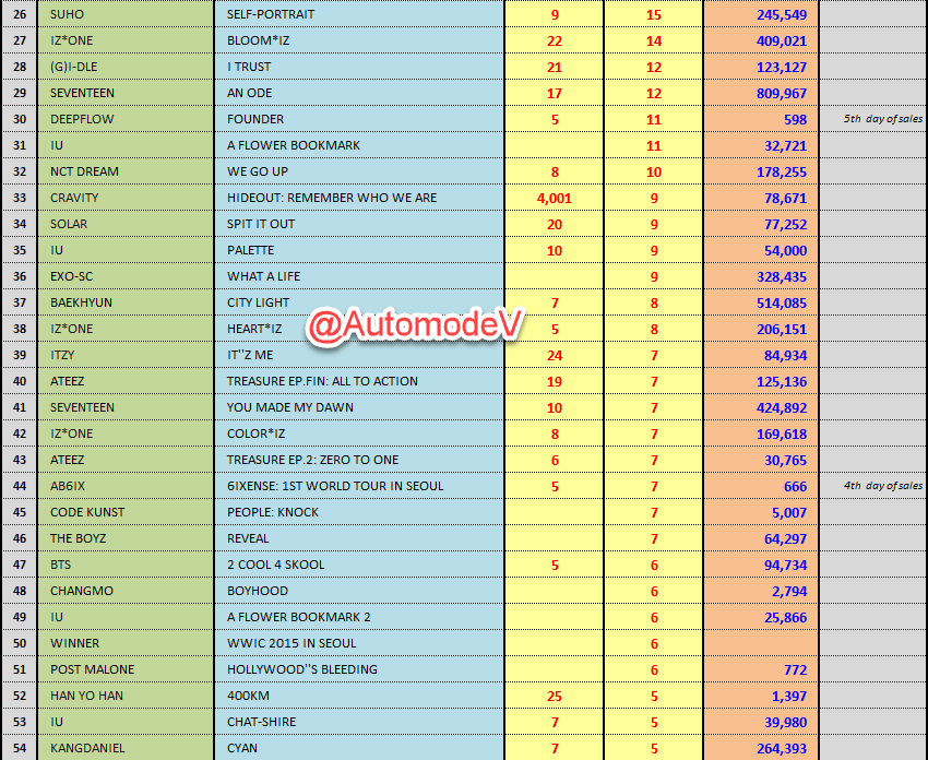 ยอดซื้ออัลบั้มจากชาร์ต HANTEO 1 เมษายน 2563 + HANTEO HIGHEST MARCH 2020