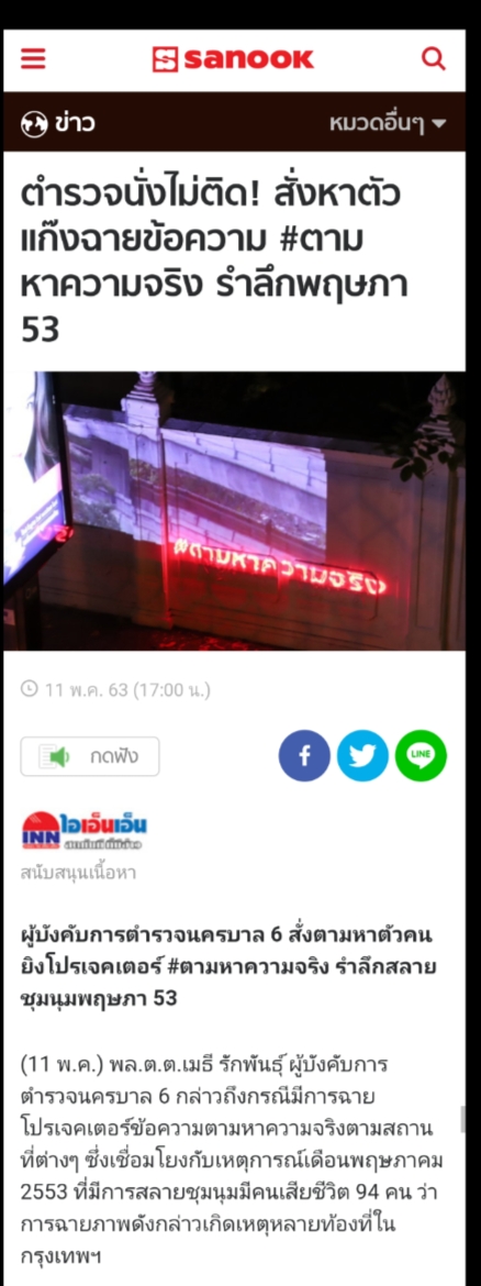 ตำรวจนั่งไม่ติด! สั่งหาตัวแก๊งฉายข้อความ #ตามหาความจริง รำลึกพฤษภา 53