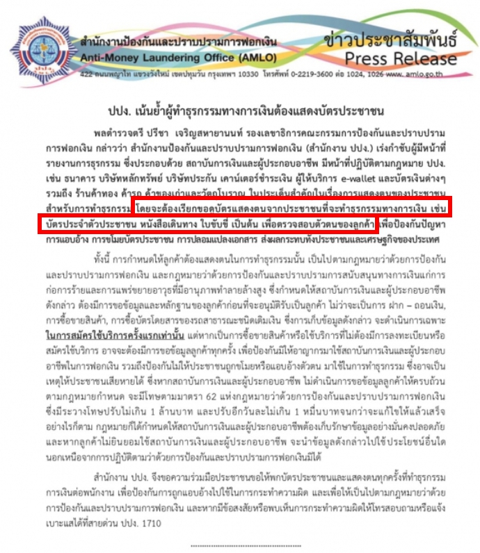 เมื่อเช้าไปโอนเงินทำบุญที่ธนาคารต้องใช้บัตรประชาชนด้วยหรือครับ ใช่นโยบายของธนาคารแห่งประเทศไทยหรือเปล่า