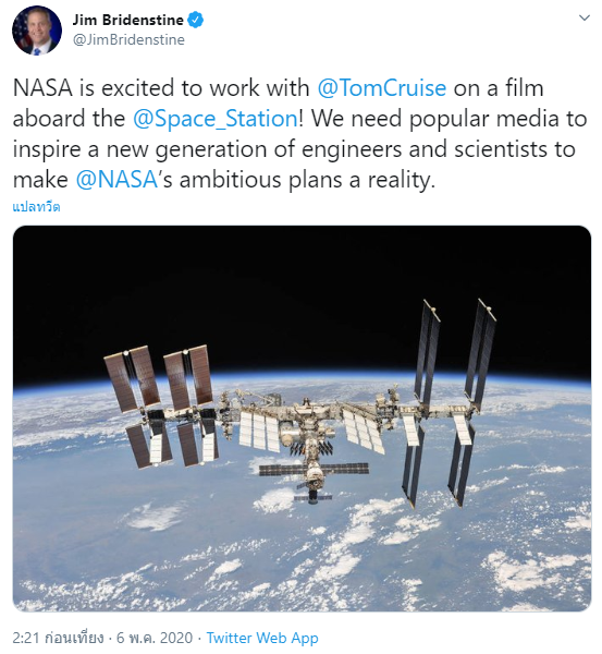 Tom Cruise ของเราจะได้ไปตะลุยอวกาศแล้ว! เป็นอีกหนึ่งข่าวล่าสุดที่น่าตื่นเต้นสำหรับแฟนๆ Tom Cruise ไม่น้อย หลังจากที่ im Bridenstine (ผู้บริหารขององค์การ NASA) ออกมาประกาศว่า "กำลังจะมีโปรเจกต์หนังใหม่ถ่ายทำที่อวกาศร่วมกับ Tom Cruise ด้วย" ซึ่งในเรื่องนี้เราก็คงต้องรอดูข่าวกันต่อไปว่าหนังจะไปในทิศทางไหน ส่วนในตอนนี้ระหว่างรอหนังใหม่ของเขา เรามาแง้มดูหนังแอ็คชั่นสุดมันของ Tom Cruise กันดีกว่าเนอะ! แล้วเพื่อนๆ ล่ะ มีเรื่องไหนของเขาที่ชอบบ้าง?