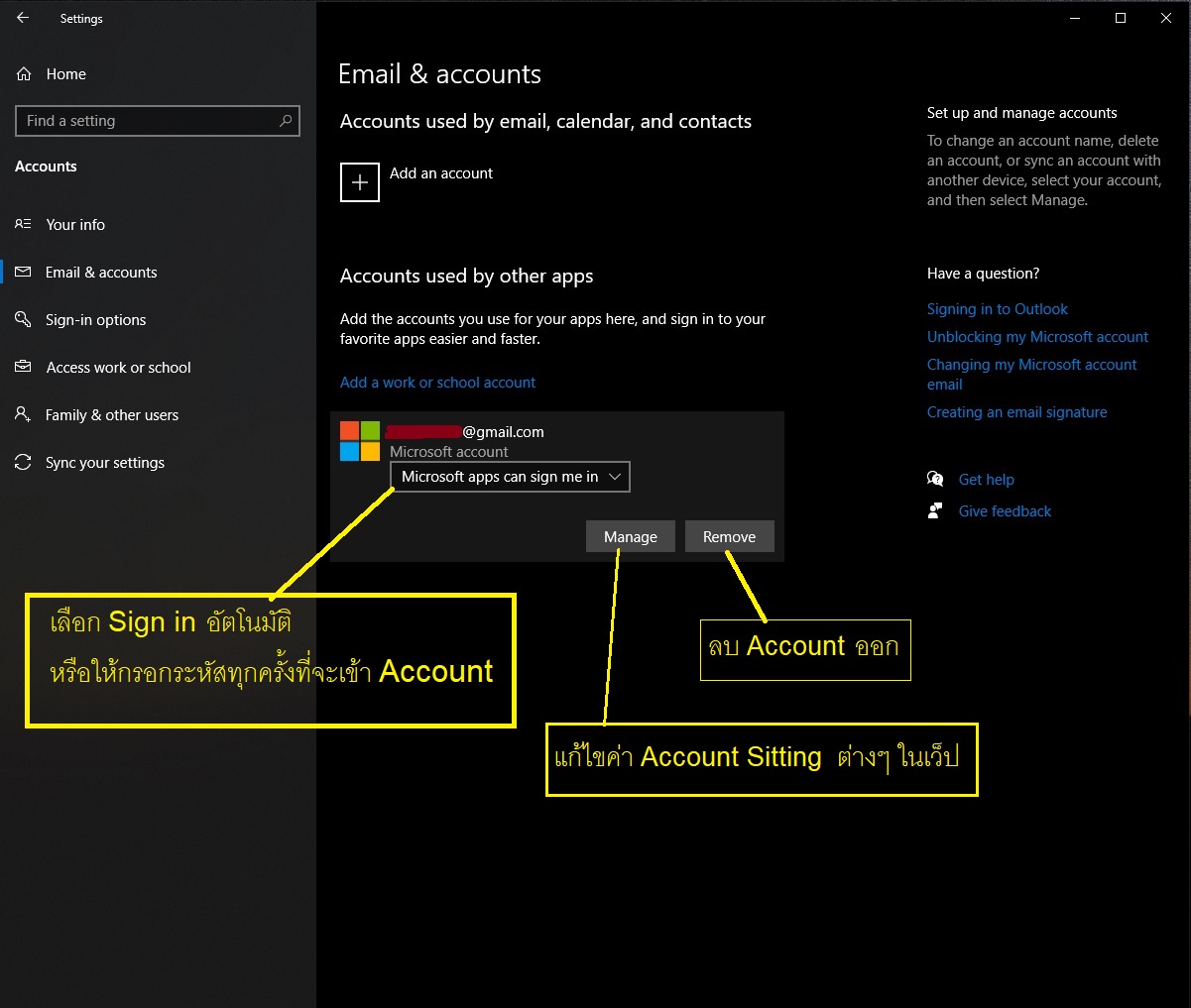 ถ้าคุณไม่ได้ตั้งค่า การ Sign in Account ไว้