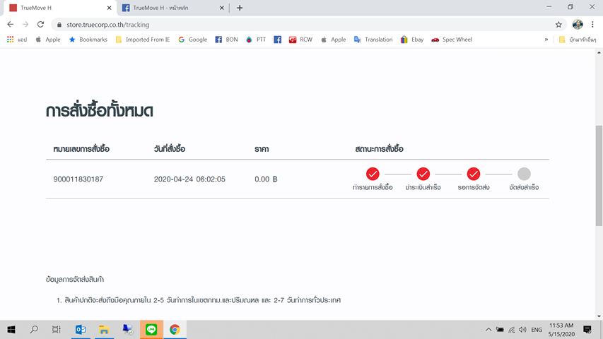 สั่งซื้อตั้งแต่วันที่ 5 พ.ค. จนถึงวันนี้ วันที่ 15 พ.ค. ก็ยังไม่ได้รับเครื่อง เมื่อวันที่ 14 โทรติดต่อไปที่ True Call Center