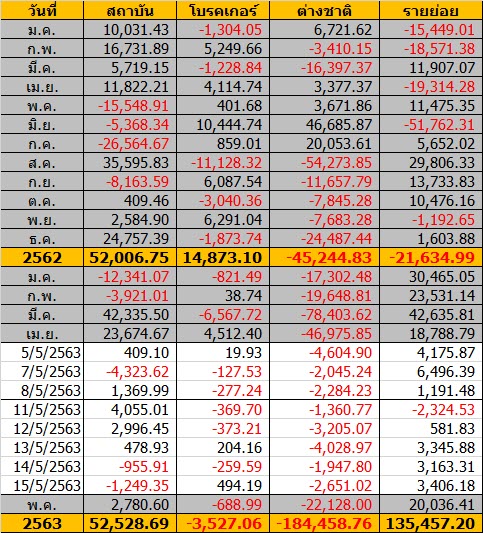 Sinthorn Summary 15/5/2563 : ต่างชาติขายสุทธิ -2,651.02 ลบ.