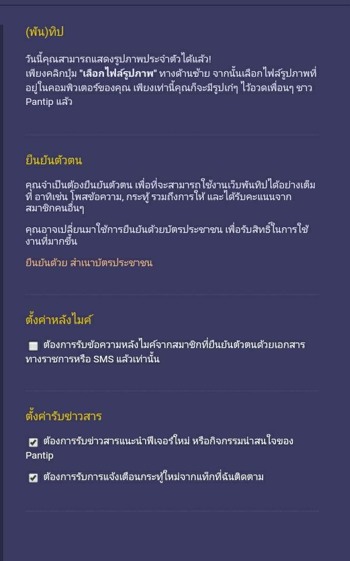 ตอนนี้ สมัคร pantip แต่ยังไม่ได้ยืนยันตัวตน แต่ในระบบน่าจะเลือกไว้ว่ายืนยันตัวตนด้วยบัตรประชาชน