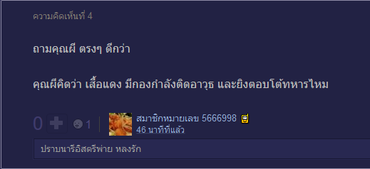 คำว่า "เสื้อแดง มีกองกำลังติดอาวุธ และยิงตอบโต้ทหารไหม"