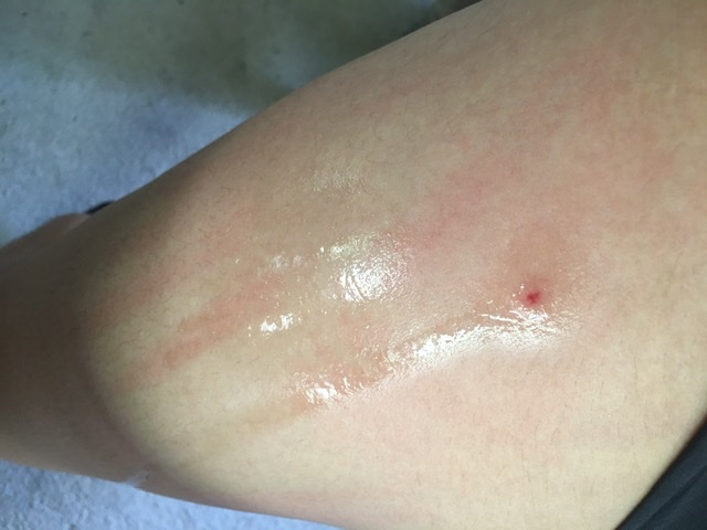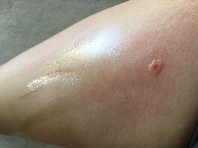 แล้วคิดว่าคงเป็นผึ้งต่อย แต่พอมาดูที่ขา เลือดค่อยๆซึมออกมานิดนึง ปวดมากๆๆๆ