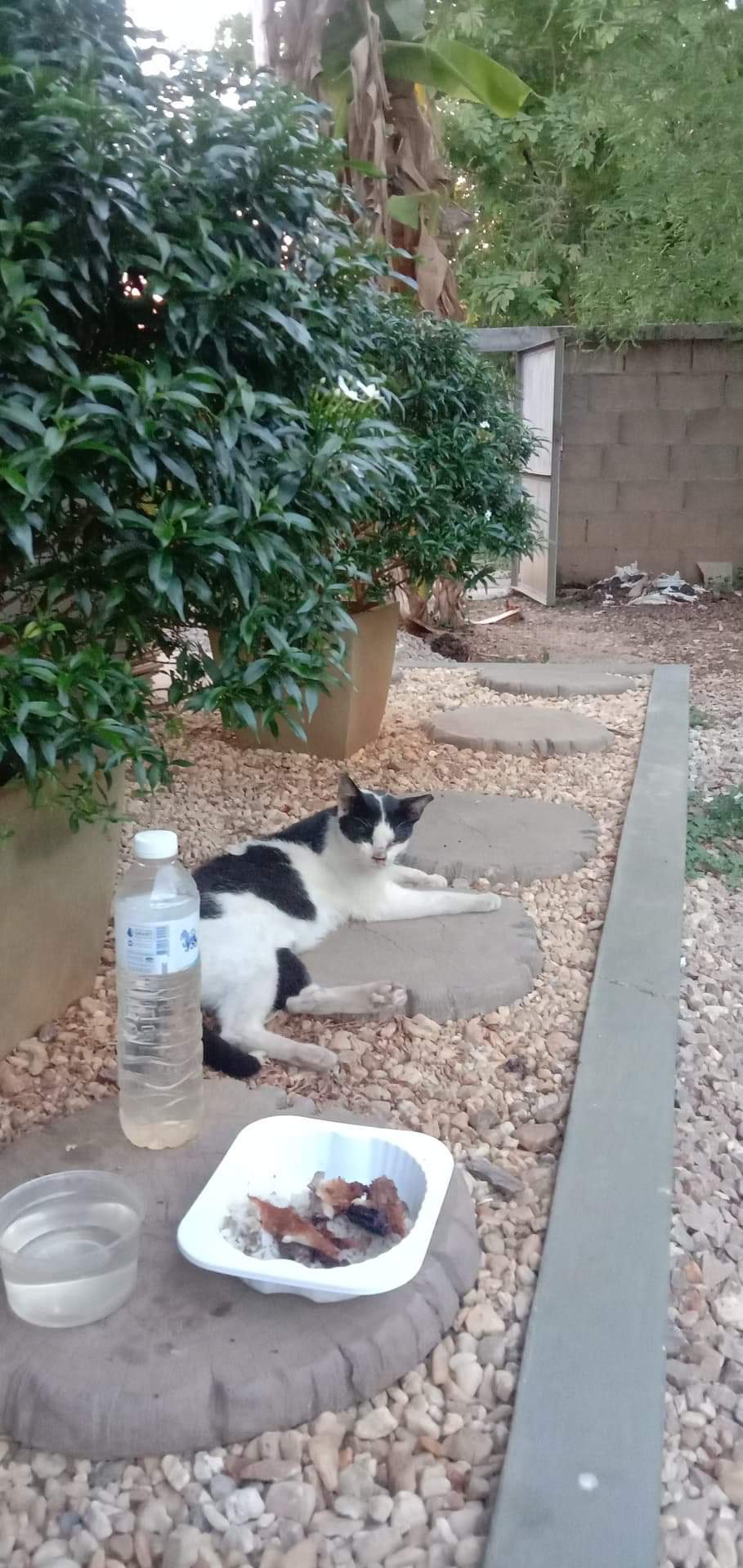 -ตัวแรกเป็นสีขาว-ดำค่ะหนูตั้งชื่อว่า วัวนม หนูเจอน้องช่วงที่มาอยู่หอตั้งแรกๆเลยค่ะ น้องชอบเดินมาหน้าห้องมากินน้ำทุกวันเลยค่ะหนูก็เปลี่ยนน้ำให้น้องกินทุกๆวัน บางวันกินอาหารที่วางไว้ให้แต่ส่วนมากน้องกินแต่น้ำค่ะ แล้วน้องก็จะฉี่ให้ดูค่ะ ตอนนี้หนูจีบน้องมาประมาณ 3-4 อาทิตย์แล้วค่ะน้องยอมให้อยู่ใกล้แต่น้องก็ยังแบบกลัวๆหน่อยค่ะแบบพร้อมวิ่งเมื่อเราุกคาม น้องไม่ยอมให้จับเลย น้องชอบร้อฃเมียวๆเบาๆค่ะร้องตลอดตอนเราตอบเมียวกลับน้องก็ตอบกลับค่ะแต่เสียงเบามากๆ หนูสงสัยว่าน้องเป็นขี้เรื้อนรึป่าวคือน้องชอบเอาตัวถูกับสิ่งที่ผิวขุระและก็ชอบเกาด้วย (ขออภัยในความรูปไม่ชัดคือว่าต้องรีบถ่ายไม่งั้นน้องจะวิ่งค่ะ)