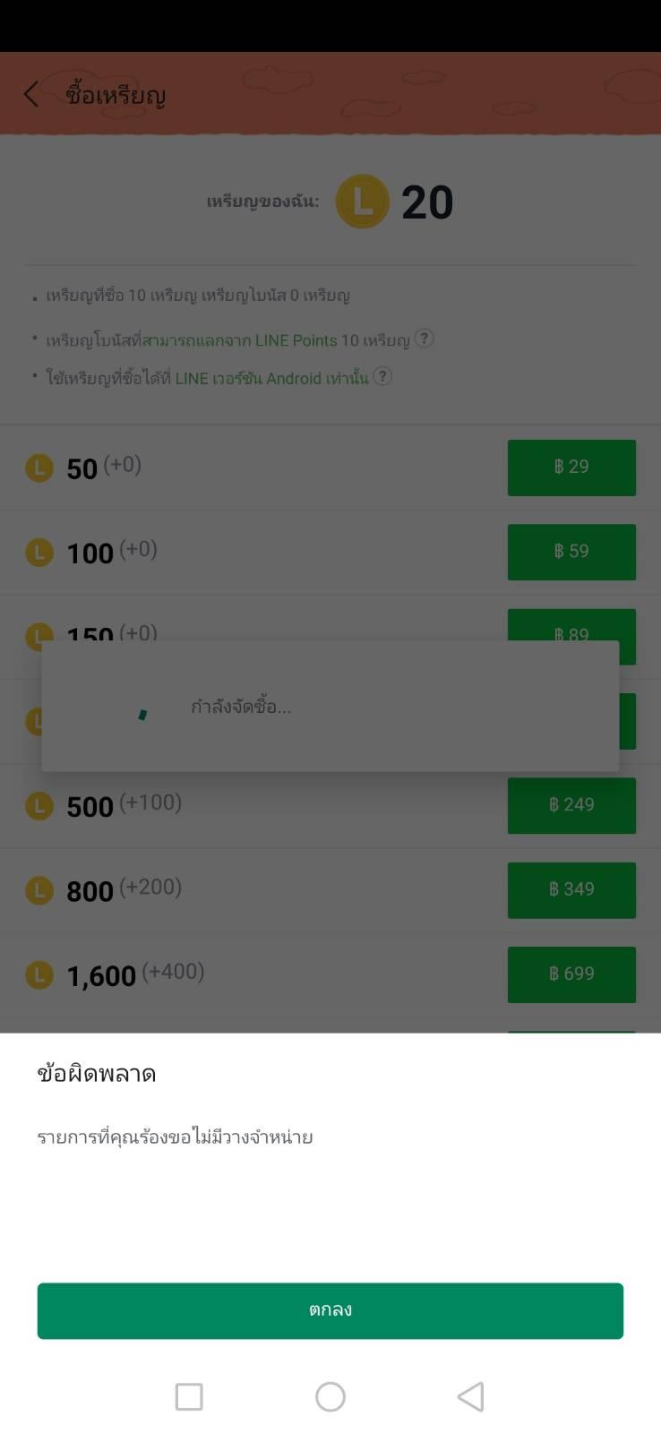 ซื้อเหรียญในไลน์ไม่ได้ค่ะ