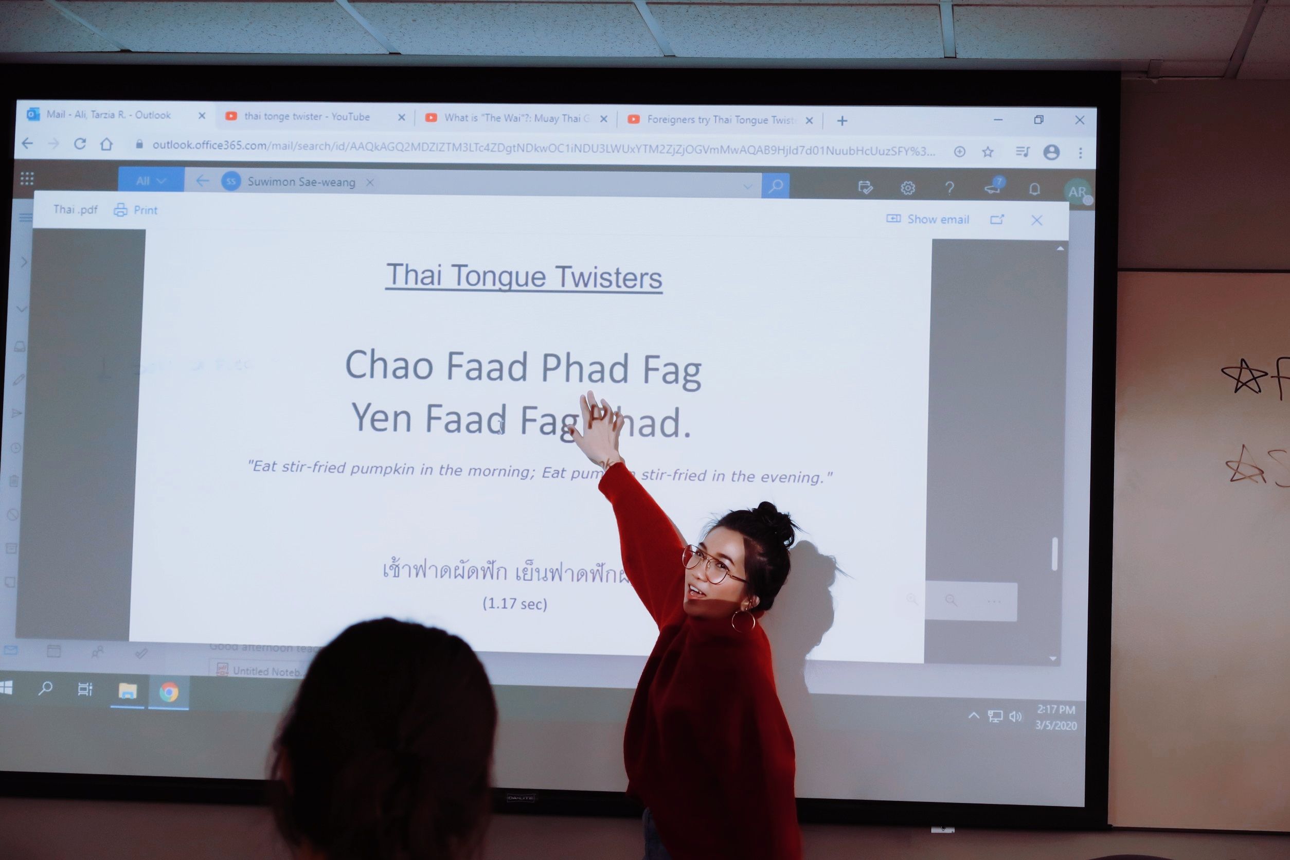 บรรยากาศพรีเซนต์หน้าเรียน เรากำลังสอนให้เพื่อนๆ ฝึกพูด "เช้าฟาดผัดฟัก เย็นฟาดฟักผัด ..." ซึ่งเพื่อนๆ ในห้องฟาด....กันอย่างสนุกสนานเลยทีเดียว ฮ่าๆๆ