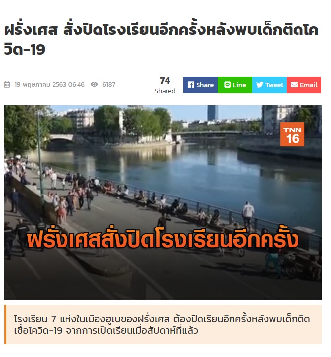 ตัวอย่างของประเทศฝรั่งเศส ที่เปิดโรงเรียนทั่วประเทศแล้วพบว่ามีเด็กติดเชื้อเพิ่มขึ้น จนต้องสั่งปิดโรงเรียนบางส่วนหลังจากเปิดเรียนได้แค่ 1 สัปดาห์