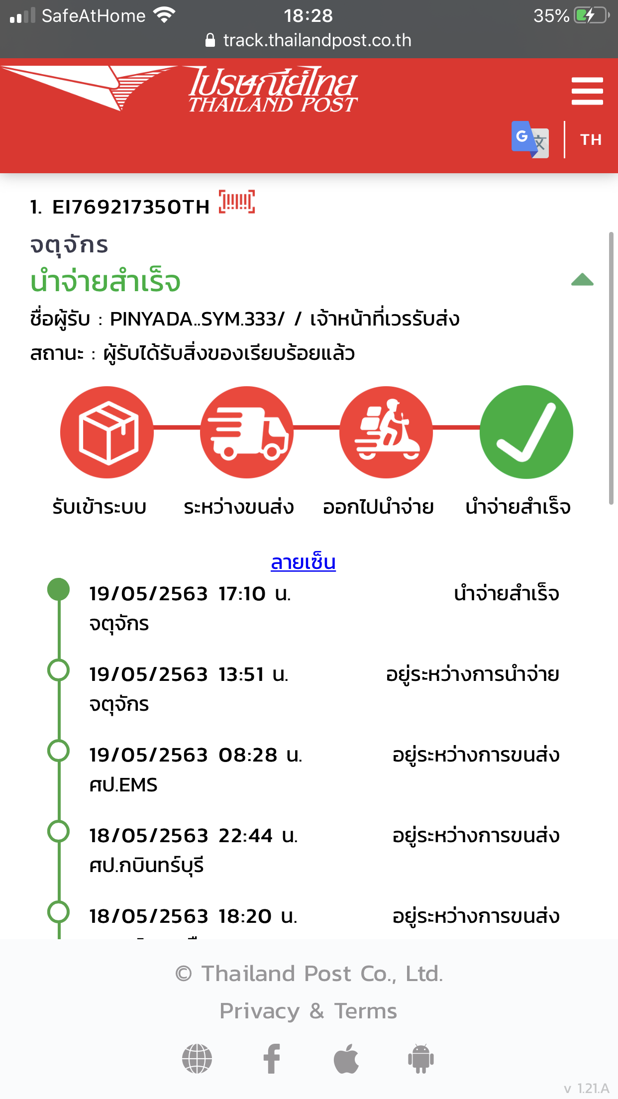 เชคเช็คสถานะ ET179437138THพัสดุของไปรษณีย์หน่อยคับ