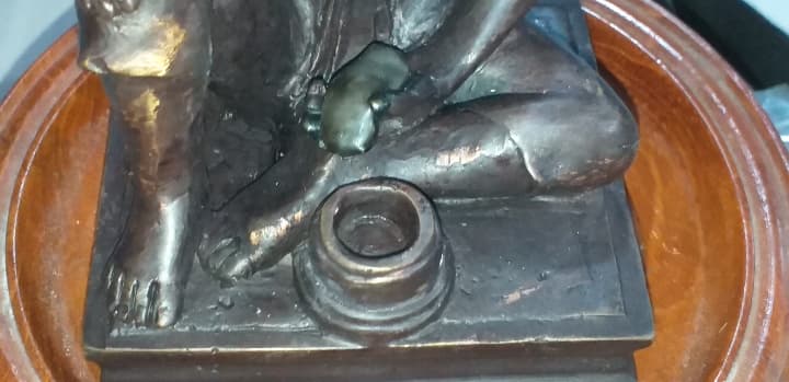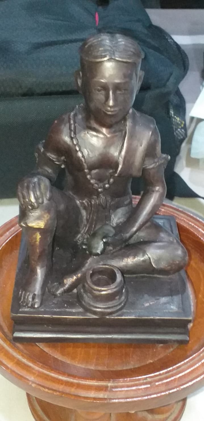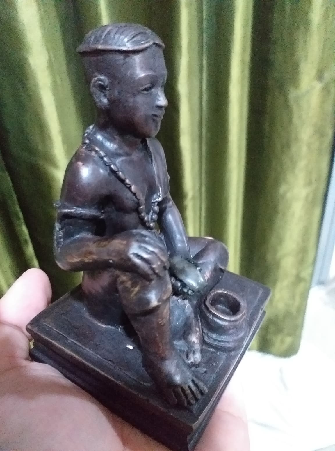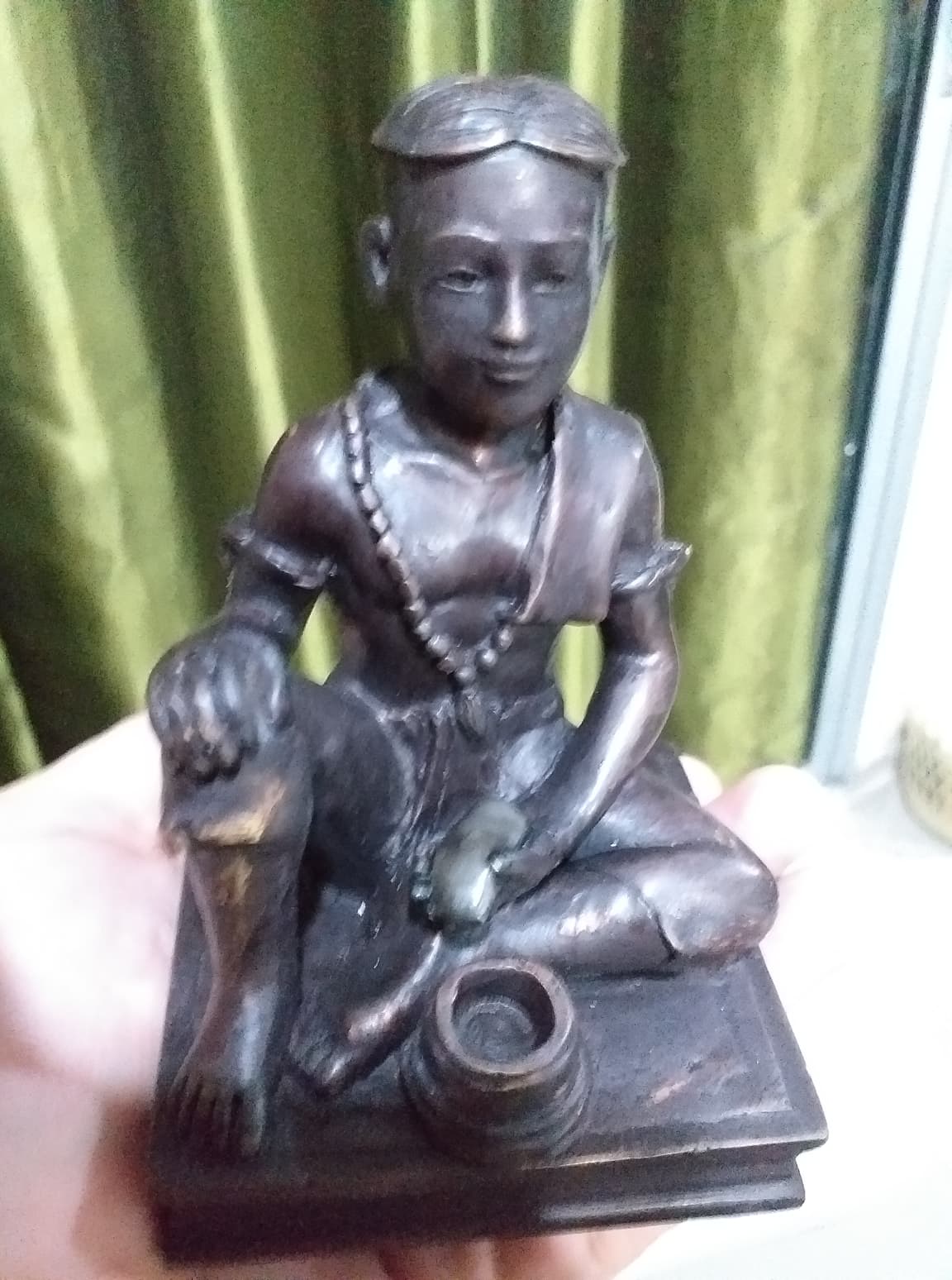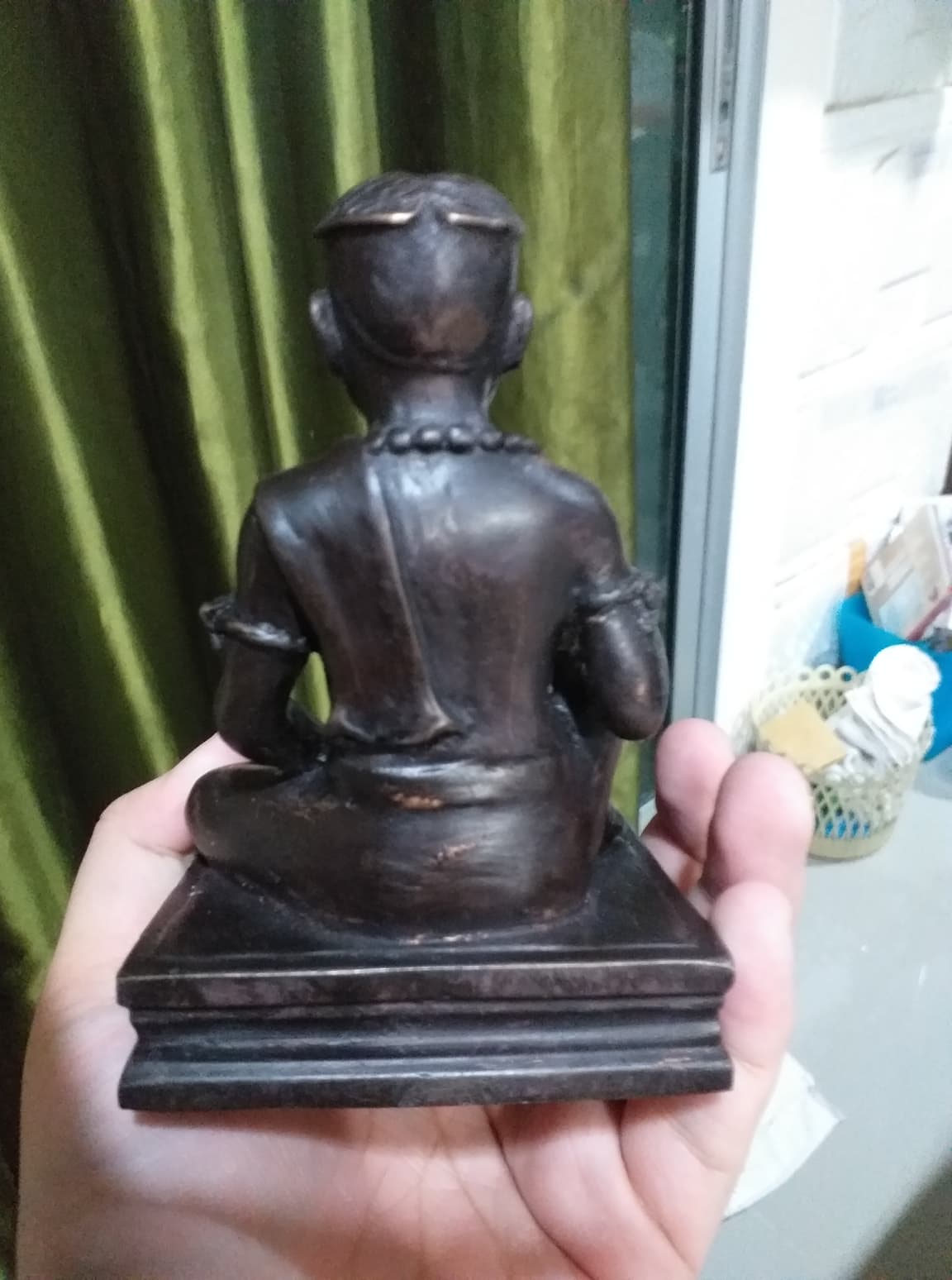 ใครรู้ช่วยบอกทีนะครับ พอดีบังเอิญได้มา รูปปั้นนี้คือรูปปั้นของใครเหรอครับ ใต้ฐานมีน้ำมันอะไรไม่รู้ฝังไว้ข้างใน