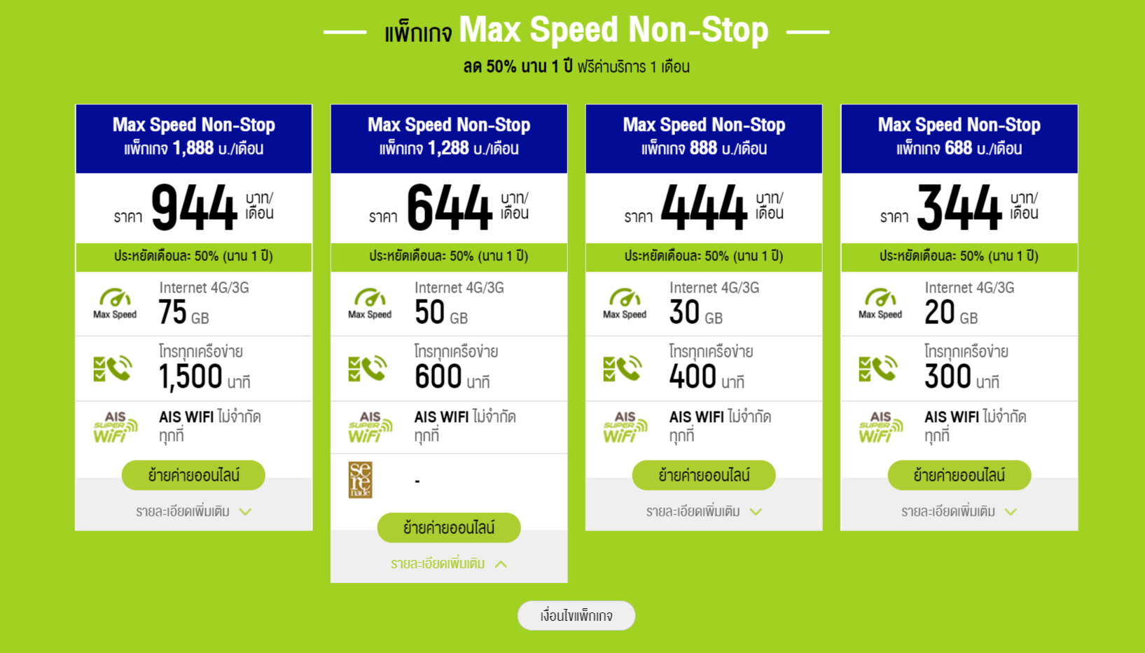 เดิมใช้ My 4G Max Speed 899 (ลด 50% จากการย้ายค่าย - เปลี่ยนเติมเงินเป็นรายเดือน) มา3ปี ไม่มี FUP