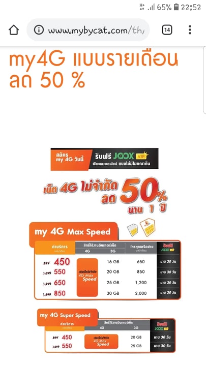 ปัจจุบันใช้โปร 1,299 บาท ได้ส่วนลด เหลือ 649 บาท โทร 800 นาที(ไม่ค่อยได้ใช้เลย) เล่นเน็ตได้ 50GB จากนั้นเล่นเน็ตไม่จำกัด 384 Kbps จากค่าย AIS เนื่องจากเปลี่ยนงา