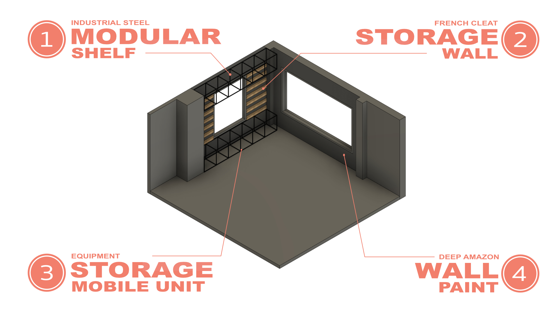 สำหรับแผนต่อไป เราจะทำสีผนังใหม่ และเมื่อสีแห้งสนิท เราจะติดตั้งชั้นแขวนของ (French Cleat) วางแผนซื้อเหล็ก และซื้อไม้สำหรับทำตู้เก็บอุปกรณ์