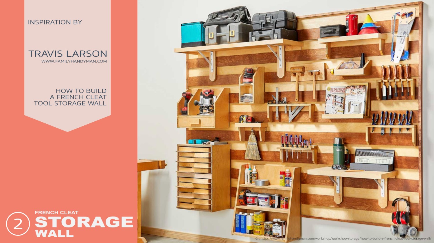 ชั้นแขวนอุปกรณ์สามารถทำได้หลายวิธี ที่คุ้นตามากก็คงจะหนีไม่พ้น Pegboard (แผ่นไม้หรือเหล็กเจาะรู ใช้แขวนเครื่องมือ) ไม่ก็เป็นชั้นวางของหรือตู้เหล็กวางเครื่องมือไปเลย สำหรับงานนนี้เราเลือกใช้ชั้นแขวนที่เรียกว่า French Cleat