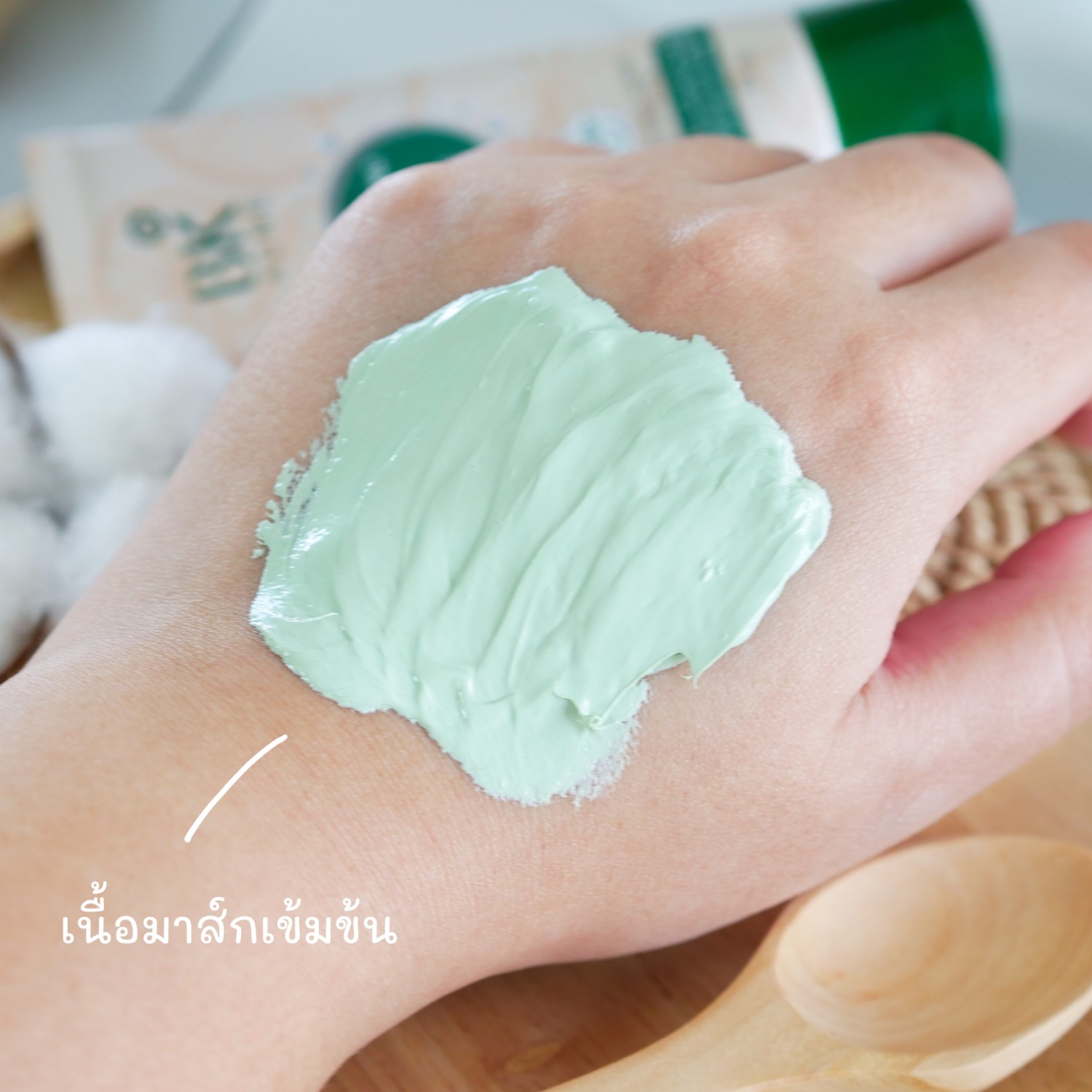 เนื้อมาส์กเป็น มาร์ค โคลนเข้มข้นมาก สีเขียวอ่อน