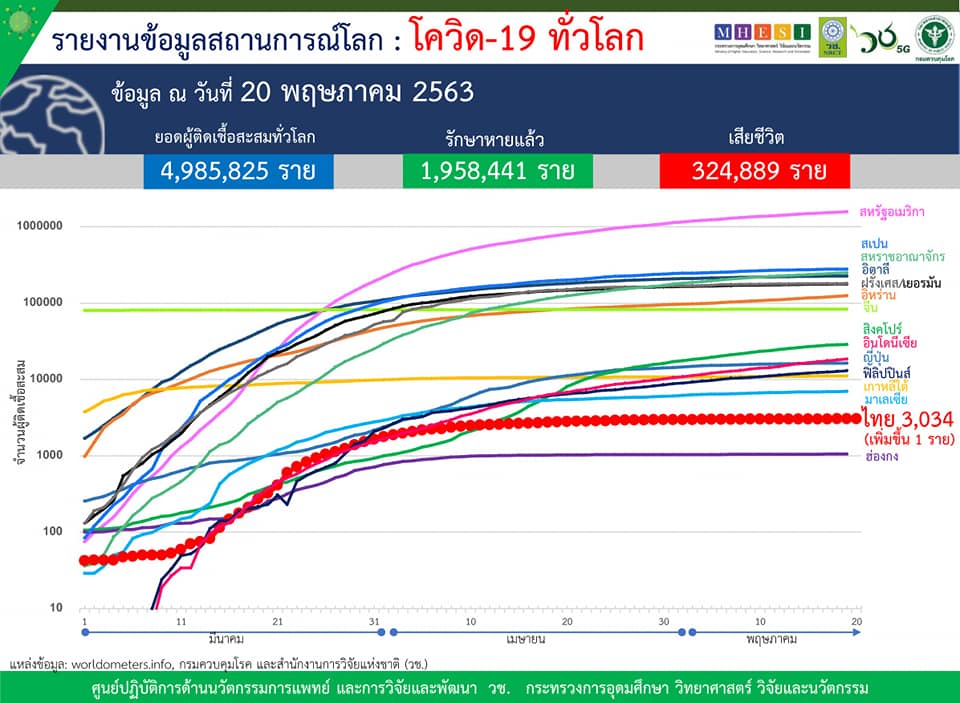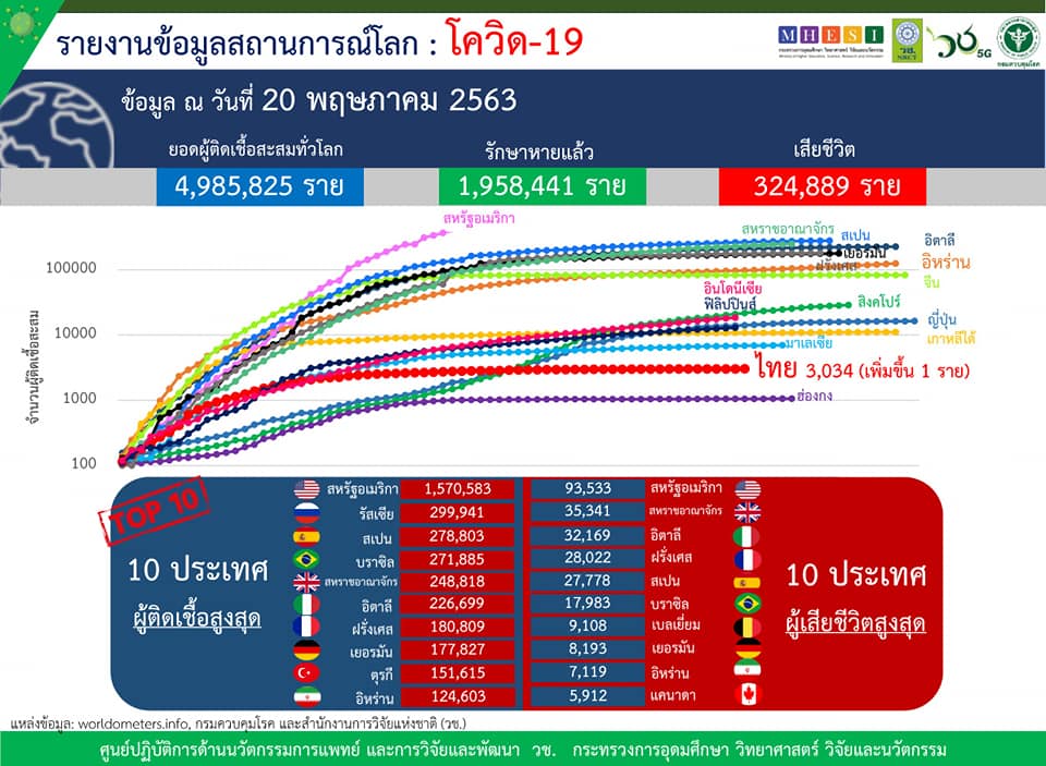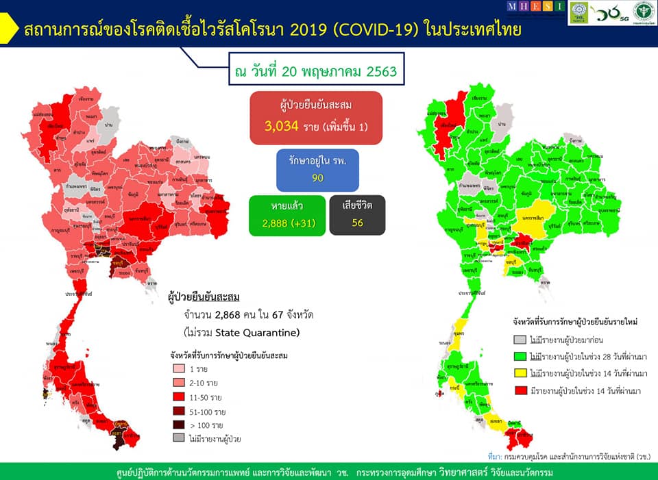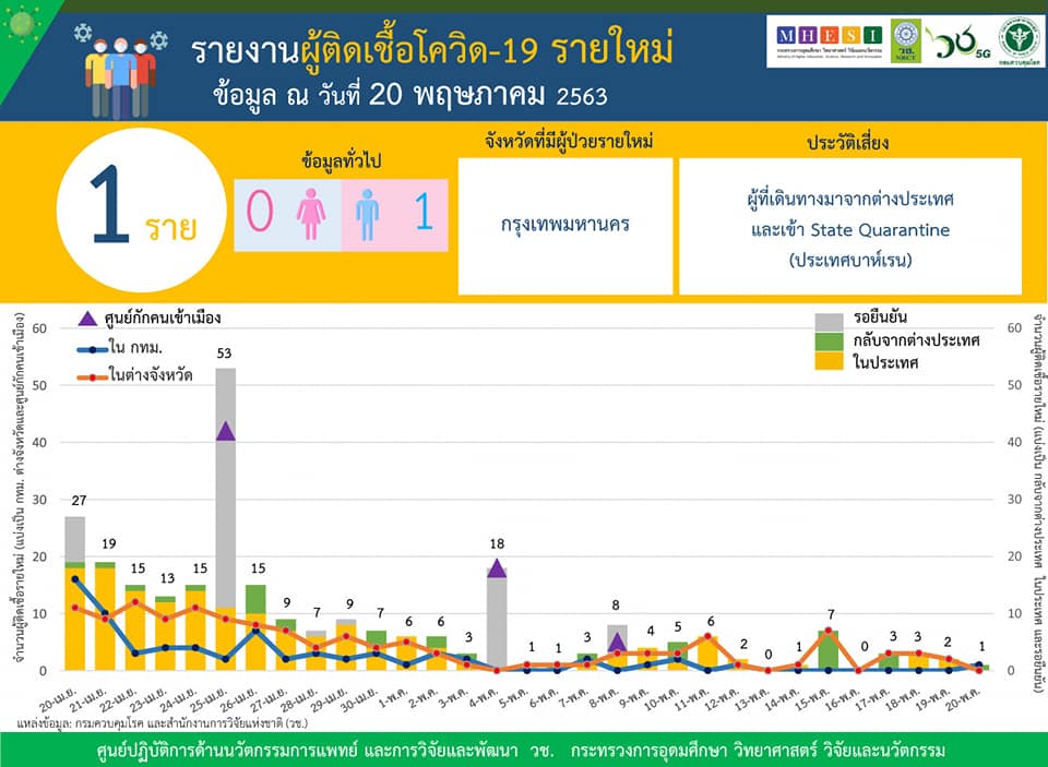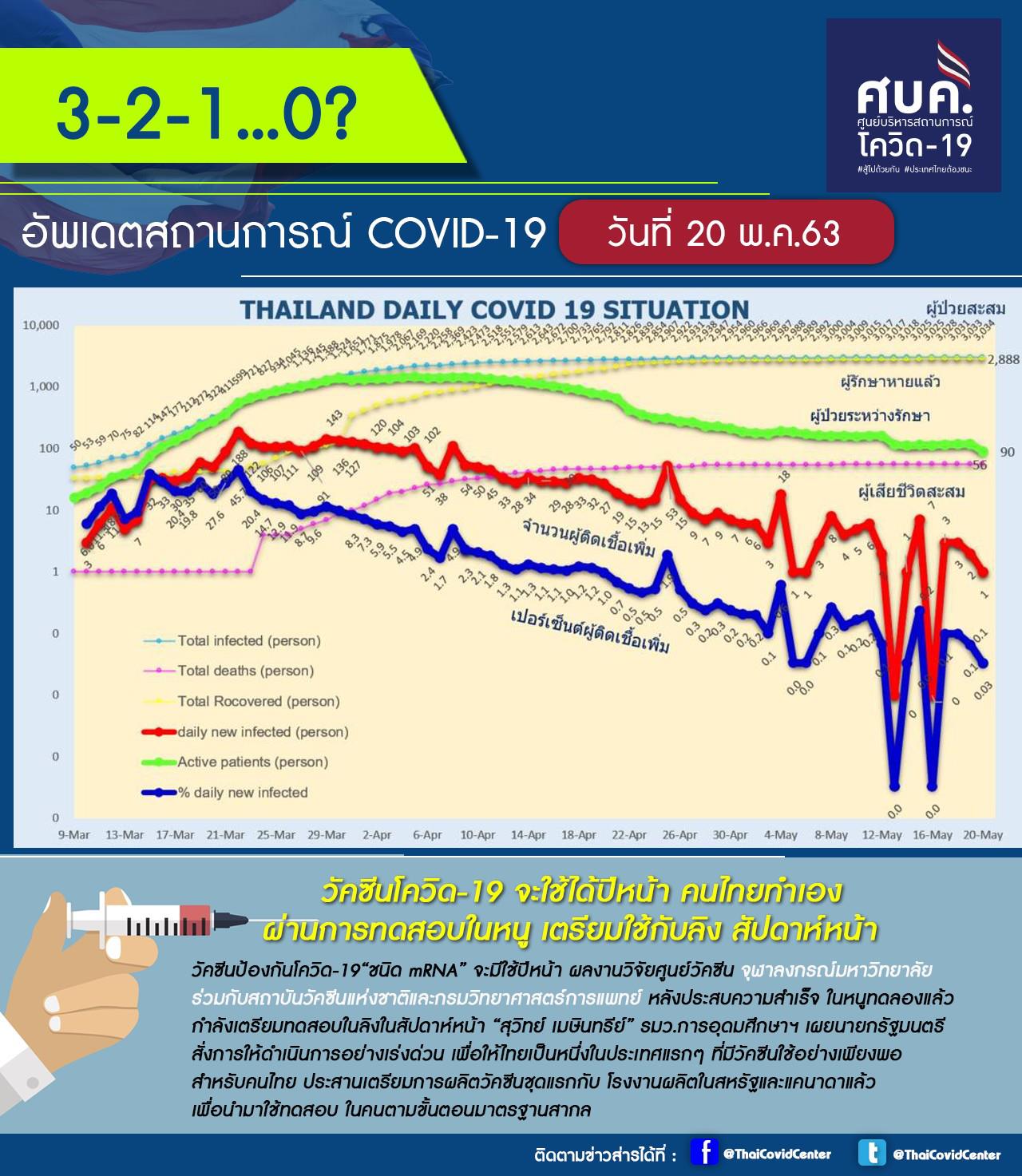 รายงานข้อมูลสถานการณ์การติดเชื้อโควิด-19 ณ วันพุธที่ 20 พฤษภาคม 2563