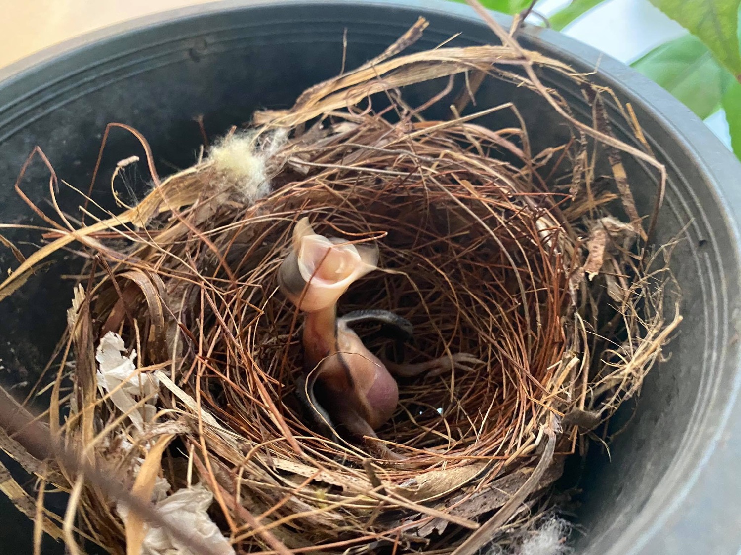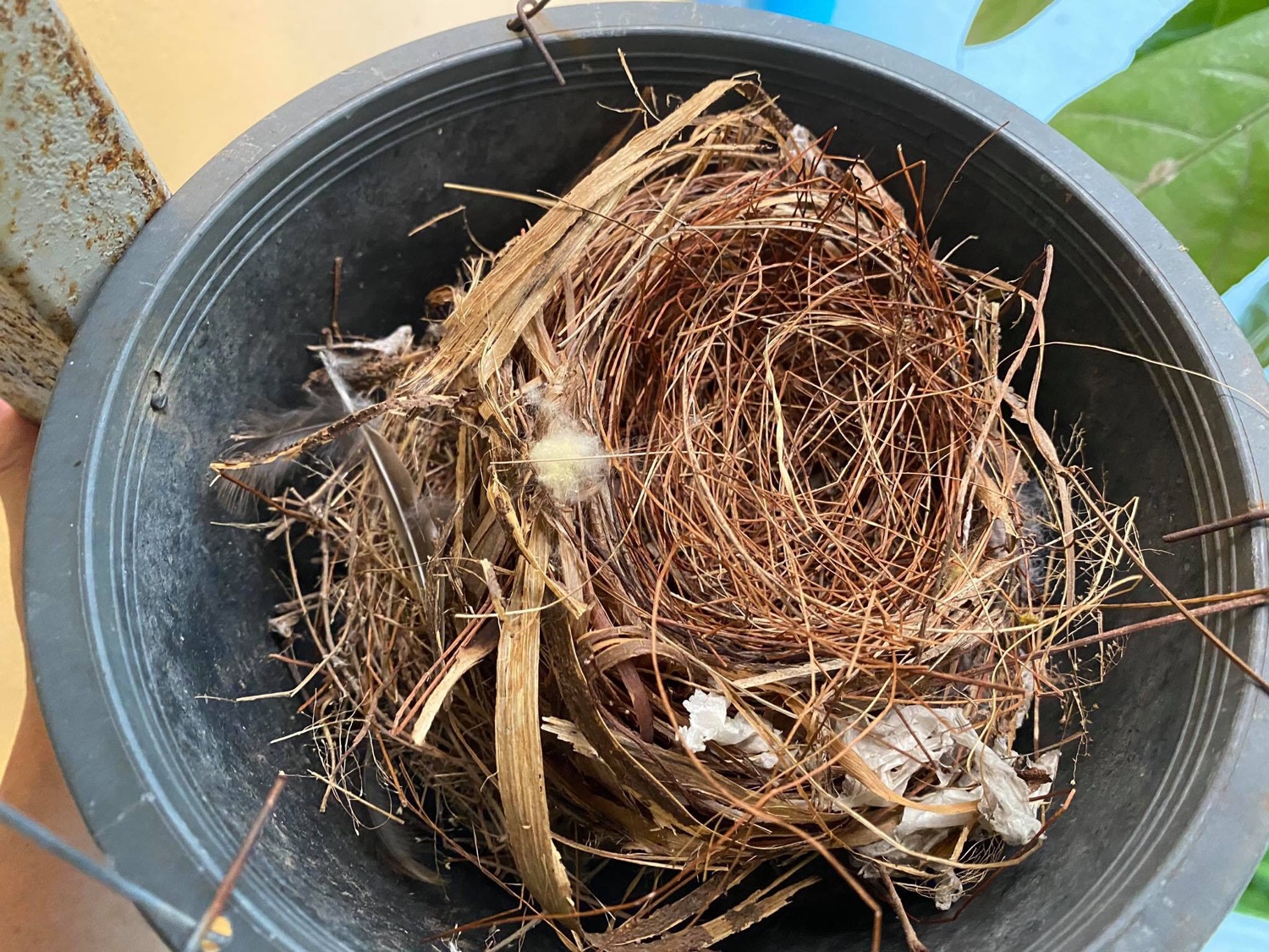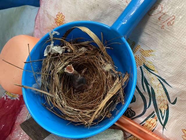 จริงๆ ลูกนกมีสองคัว แต่อีกตัวนึงเราหาแล้วแต่ไม่เจอ ไม่แน่ใจส่าเพราะงูมากินรึป่าว (แถวบ้านมีงูเขียวหางไหม้)