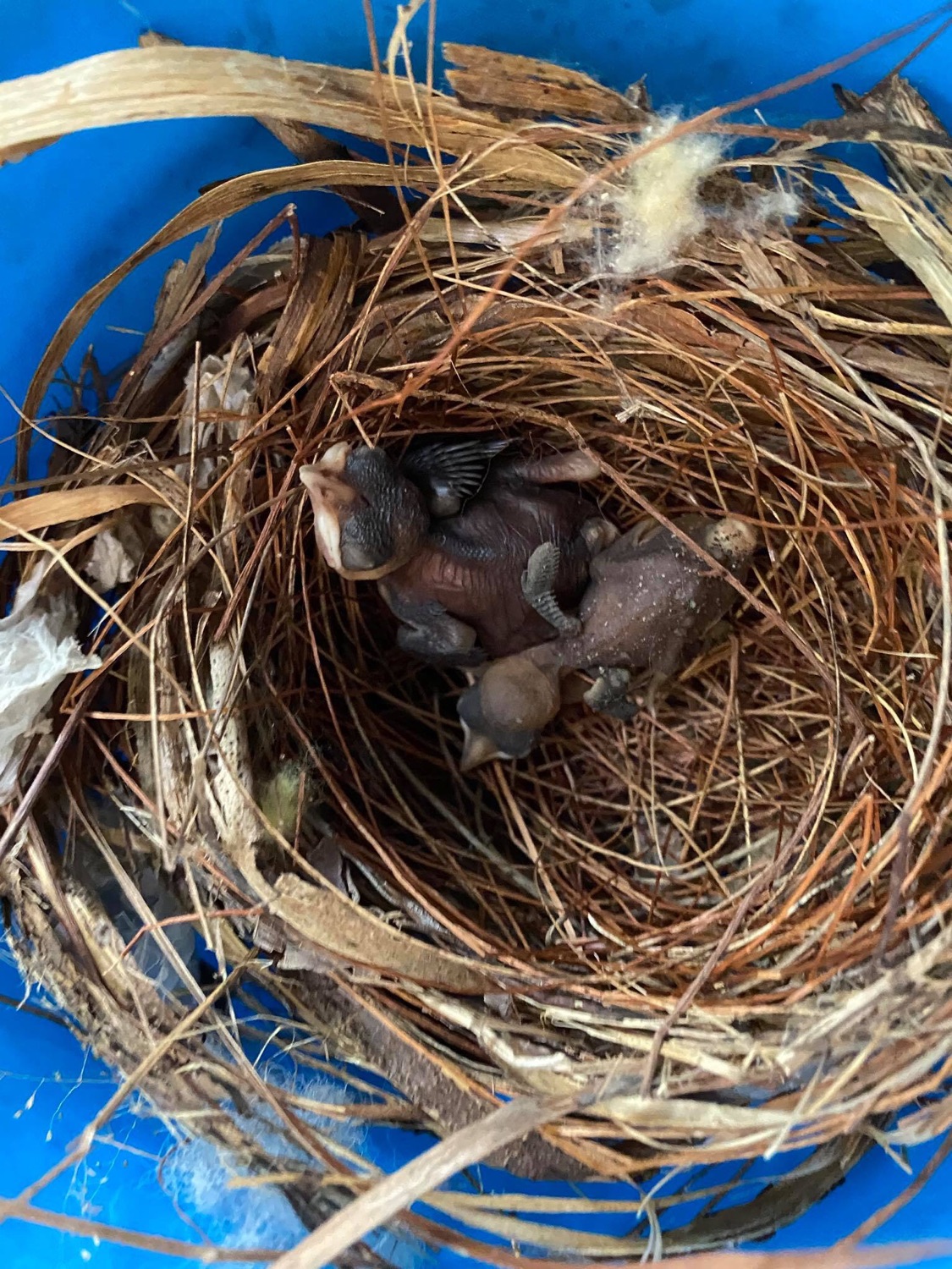 เราเจอลูกนกตกรังและไม่ทราบว่าเป็นนกอะไร เราควรเลี้ยงไว้หรือคืนรังที่เดิมดีค่ะ แต่สถานที่ที่นกทำรังไว้ไม่ค่อนแข็งแรง เพราะต้นไม้อ่อน ไม่แข็ง ลมมาคืนรังเอน เราก็ดามรังไว้แล้วพอมาดูวันนี้ รังเอนล้มเลย(ก่อนหน้าก็ตกลงมาแล้ว) อันนี้เราดึงรังออกมาแล้วนะคะ เพราะรังล้มจนลูกนกตกออกมาเลย ต้นสูงประมาณ150ซม.