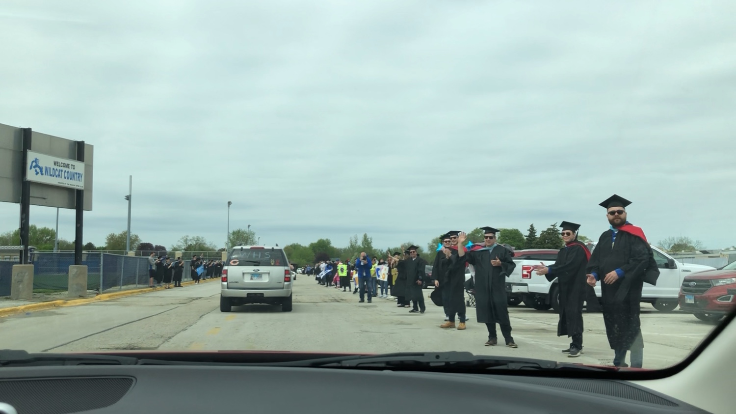 ก่อนถึงรร.ก็จะมีตำรวจมาโบกรถให้ พร้อมกับป้ายต้อนรับในภาพค่ะ