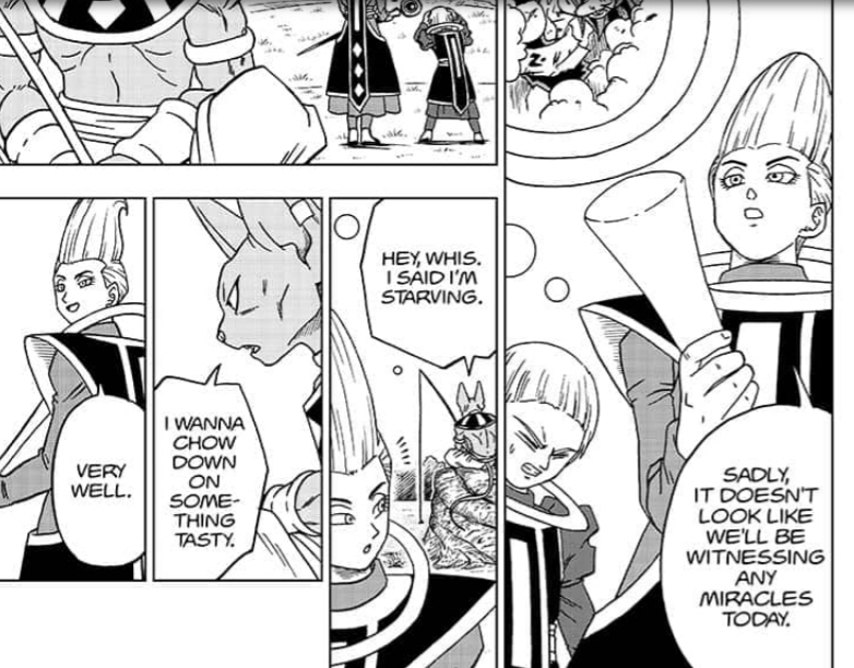 ซึ่งวิสก็ทำการหันไปตอบบิลส์ว่า "Very well" ซึ่งมีความหมายว่าดีมาก ตรงจุดนี้จากไม่กี่ตอนก่อนวิสเคยขอให้บิลส์ไปช่วยพวกโกคูแต่ในตอนนั้นบิลส์ไม่ยอมไป ซึ่งเหตุผลที่บิลส์ต้องการจะกินอาหารอร่อยๆ คงเพราะจะให้วิสมาไปโลกจะได้ไปกระทืบโมโระยังไงล่ะ แต่ที่พี่แกไม่พูดตรงๆเพราะพี่บิลส์แกเป็นสายซึนเดเระ 5555 และที่วิสตอบว่า Very well ก็เพราะว่าบิลส์ยอมทำตามที่วิสขอเมื่อหลายตอนก่อน!
