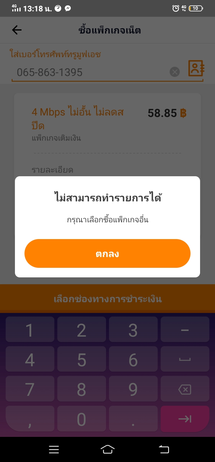 จะสมัครเน็ต 4 Mbps 2 วัน ราคา 58.85บาทแต่มีนขึ้นแบบในภาพ เป็นเพราะอะไรคะ แล้วลองสมัครแบบอื่นดูก็ไม่ได้เหมือนกัน บางทีก็ขึ้นแพ็คเกจไม่ตรงตามเงื่อนไขบ้างละ