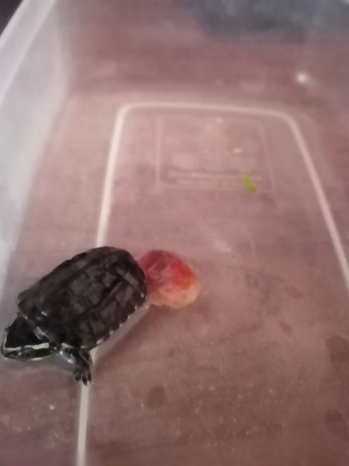 ผมเก็บเต่าเพิ่งเกิดได้ แต่ไข่แดงมันแห้งติดอยู่กับพื้น