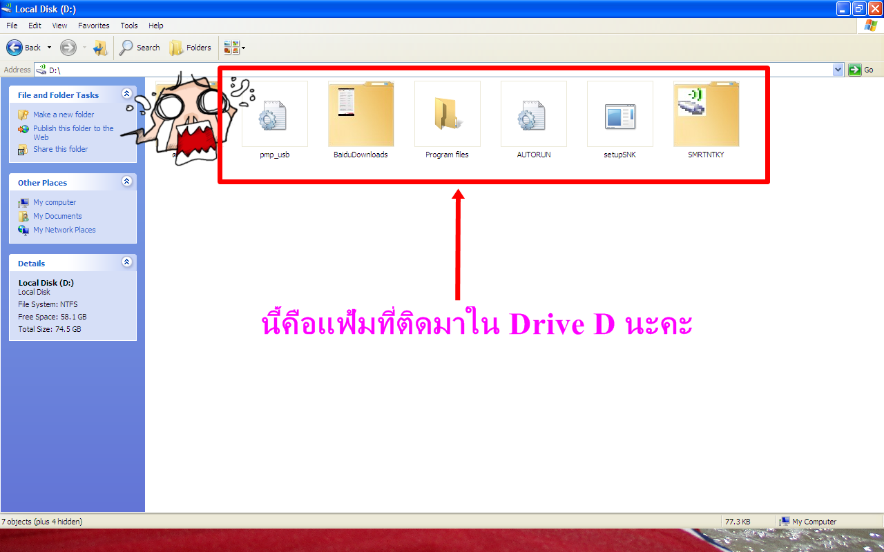 Drive D กลายเป็นรูปแฟลชไดร์ฟ ทำยังไงดีคะ