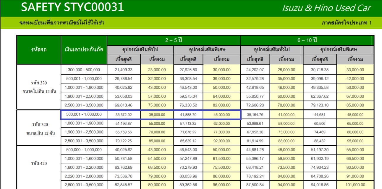 ทุน 2,800,001 - 3,500,000 เบี้ย 94,000 บาท