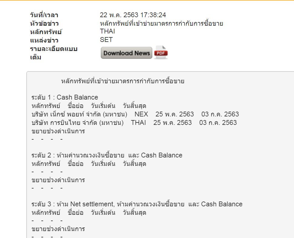 ไม่มีการเบี้ยว เหลือกปฏิบัติ สองมาตรฐาน ตลท ให้ thai โดน Cash ตามคาด ต้องติดตามดูจ้าวจะสนองตอบอย่างไร