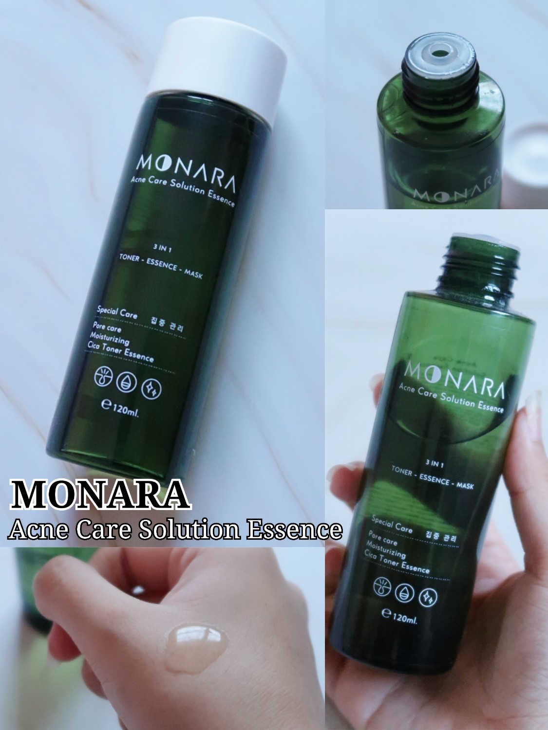 ผลลัพธ์หลังใช้ 14 วัน : น้ำตบใบบัวบกMONARAตัวนี้ให้ความชุ่มชื่นสูงมากก จะเห็นได้ชัดในเรื่องของรูขุมขนกระชับ ตบแล้วผิวกระจ่างใสขึ้น ดูอิ่มฟู แข็งแรงขึ้น พวกสิวผด สิวอุดตัน หายไปเยอะมากก วันไหนอยากฟื้นฟูผิวแบบเร่งด่วน จ๋าก็จะเทลงสำลีแล้วมาส์กทิ้งไว้บนหน้า 20-30 นาทีค่ะ ผิวจะอิ่มฟูมากๆหลังมาส์กเลยค่ะ จบขวดนี้มีขวดต่อไปแน่นอน