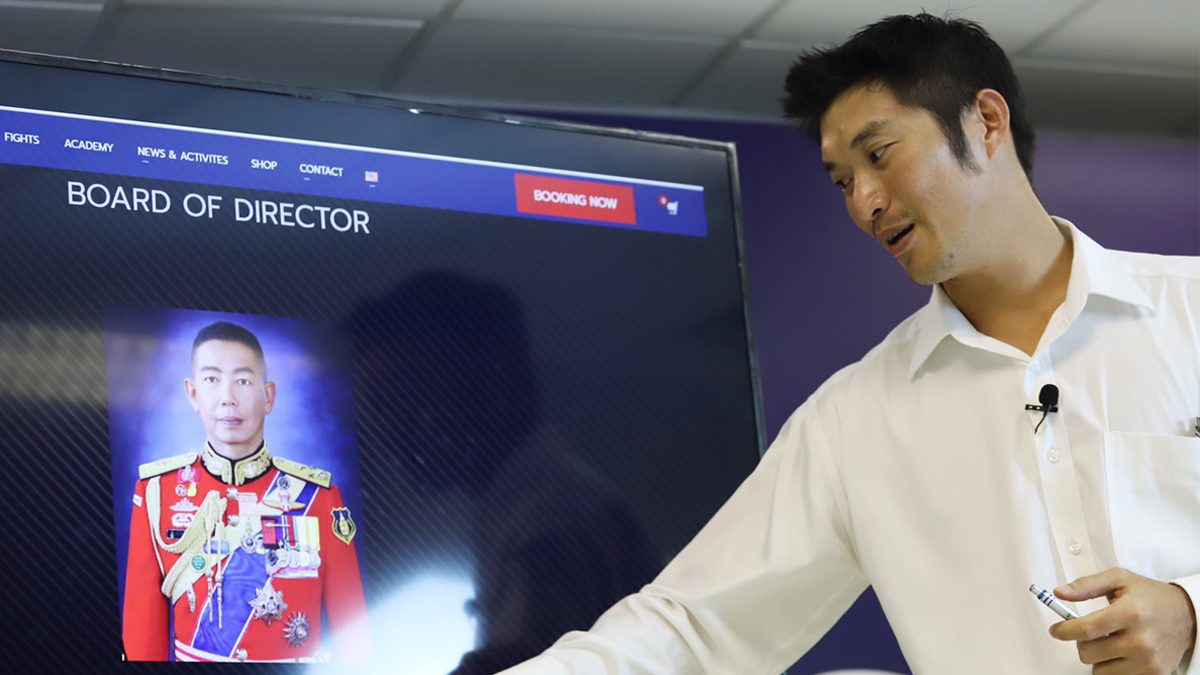 นายธนาธร กล่าวว่า อีกกรณีคือสนามมวยลุมพินี วันนี้เมื่อเข้าไปดูในเว็บไซต์ รายนามกรรมการบริษัทก็จะพบว่า พล.อ.อภิรัชต์ ยังคงเป็นประธานอำนวยการสนาม ยังไม่เห็นการเปลี่ยนแปลงที่ว่ามีเอกชนเข้ามาบริหาร รวมถึงกรรมการอื่นๆ ก็เป็นนายทหารชั้นผู้ใหญ่ทั้งหมด และเมื่อค้นดูบริษัทเกี่ยวข้องเรื่องลิขสิทธิ์การถ่ายทอด การประชาสัมพันธ์ เป็นของ บริษัท เวิร์ล สปอร์ต กรุ๊ป จำกัด