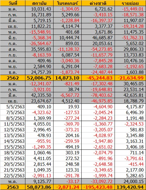 Sinthorn Summary 14/5/2563 : ต่างชาติขายสุทธิ -1,947.80 ลบ.