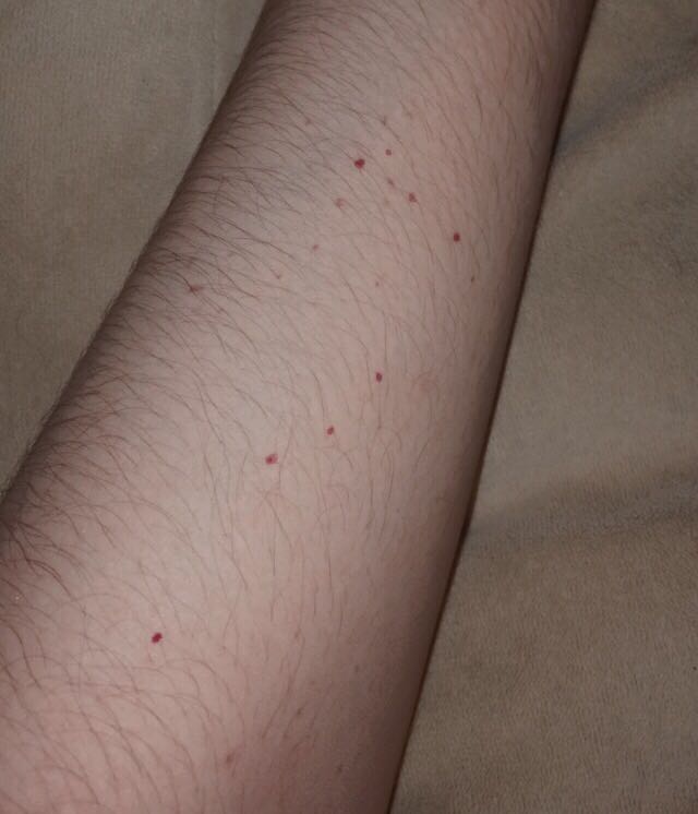 คือเค้าตื่นเช้ามาก็ไม่มีอะไร พอตกเย็นยกแขนดูก็เห็นเป็นจุดแดงๆตามแขน ไม่คัน ไม่นูน ไม่แสบ ไม่รู้สึกอะไรเลยค่ะ เคยเป็นมาแล้วครั้งนึง ประมาณสองอาทิตย์ก็หาย อยากทราบว่าใครเคยเป็นบ้าง แล้วมันเกิดจากอะไรคะ น่ากลัวมั้ย รบกวนผู้รู้หน่อยน่ะคะ ขอบคุณค่ะ▼・ᴥ・▼