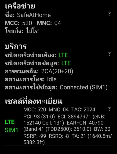 Mate 20Pro 4G+ True 4G : 5G TDD2500