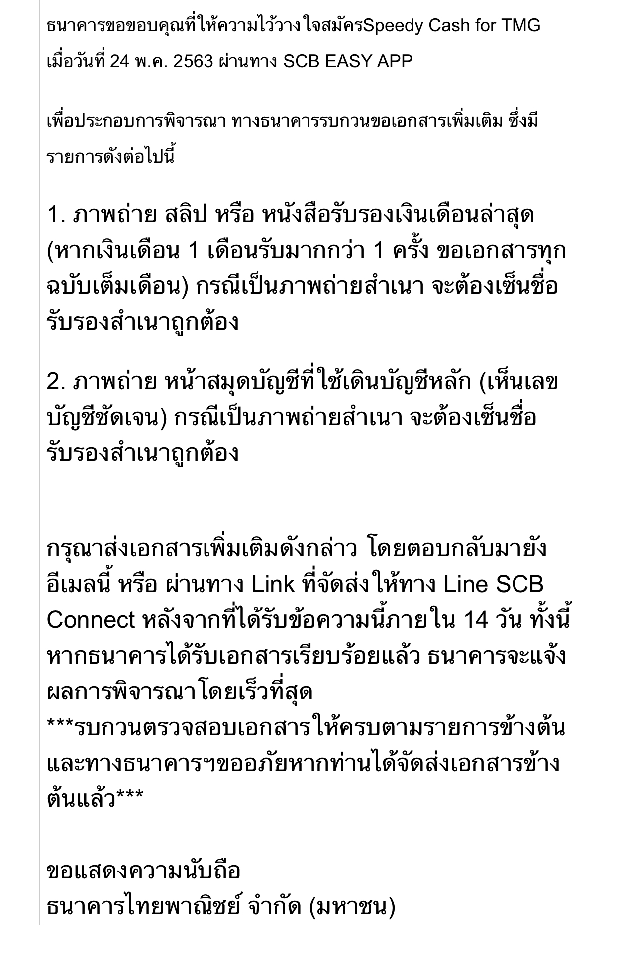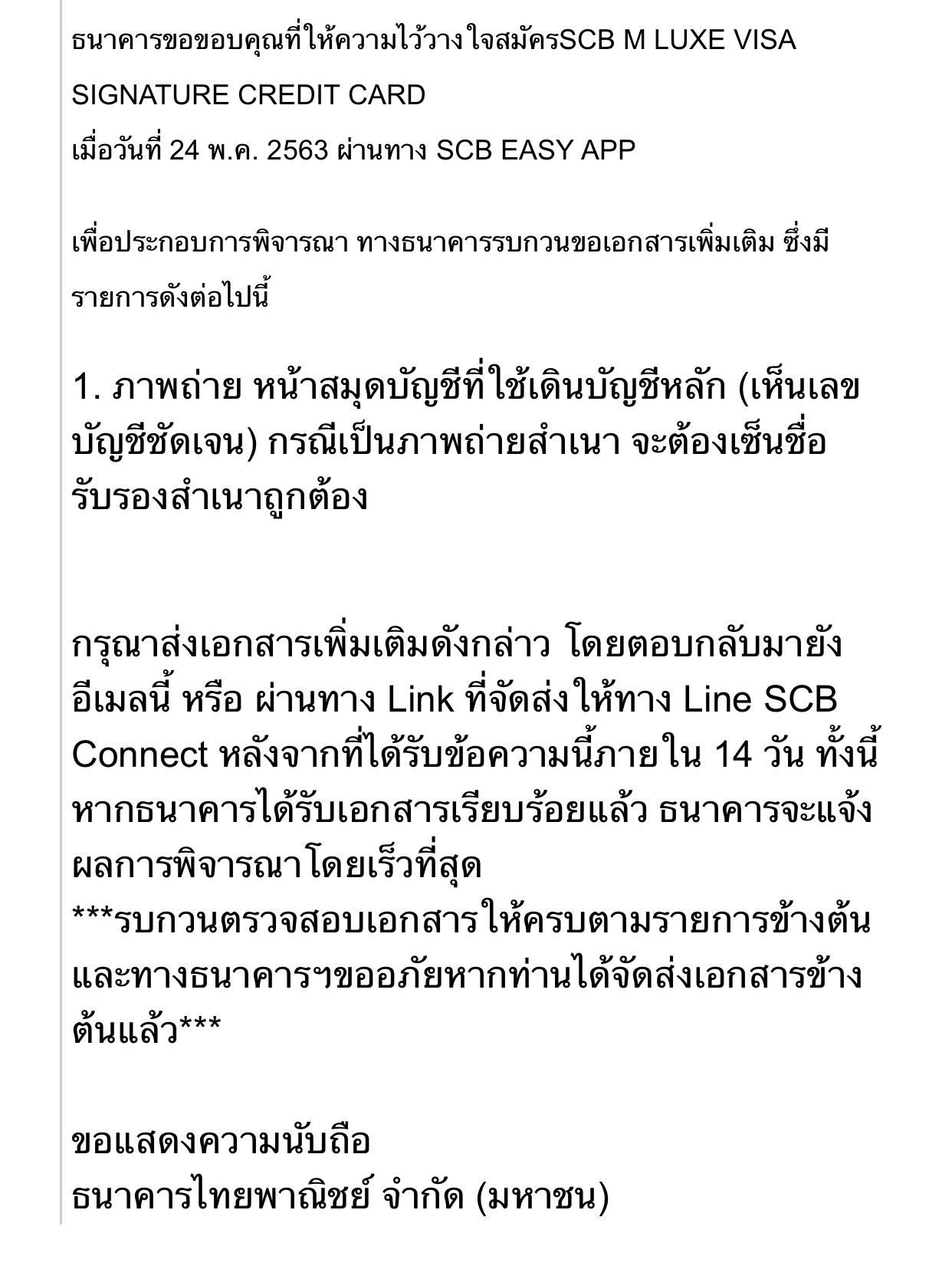 เราสมัครบัตร SCB M Luxe ทางแอพไป ได้เมลล์ตอบกลับให้ส่งเอกสารเพิ่มเติม แบบนี้ผ่านไหมค่ะ
