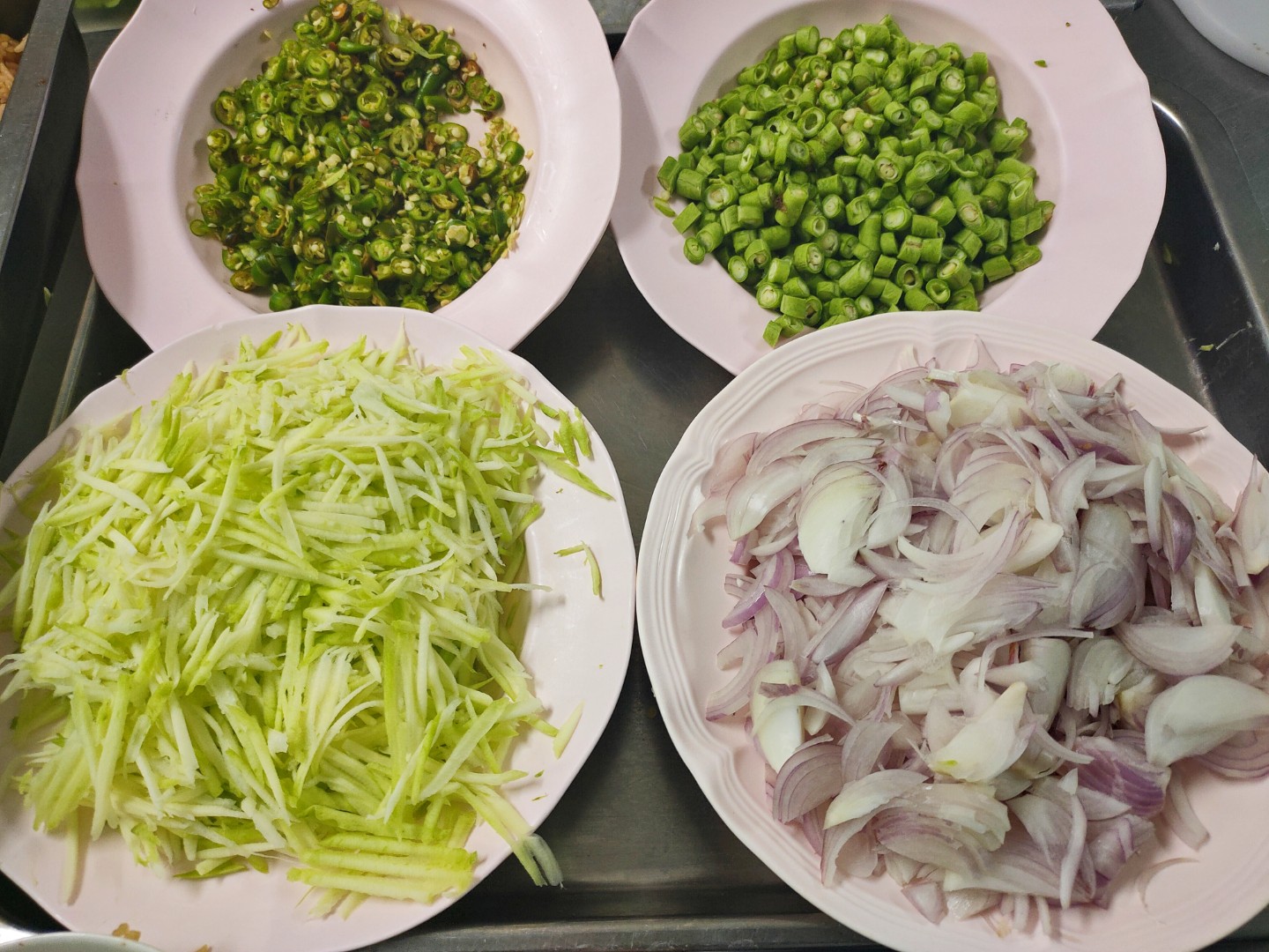 6.หอมแดง มะม่วงเปรี้ยว ถั่วฟักยาว แครอท พริก