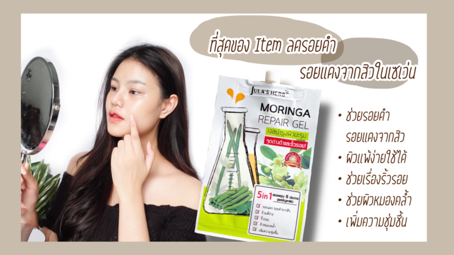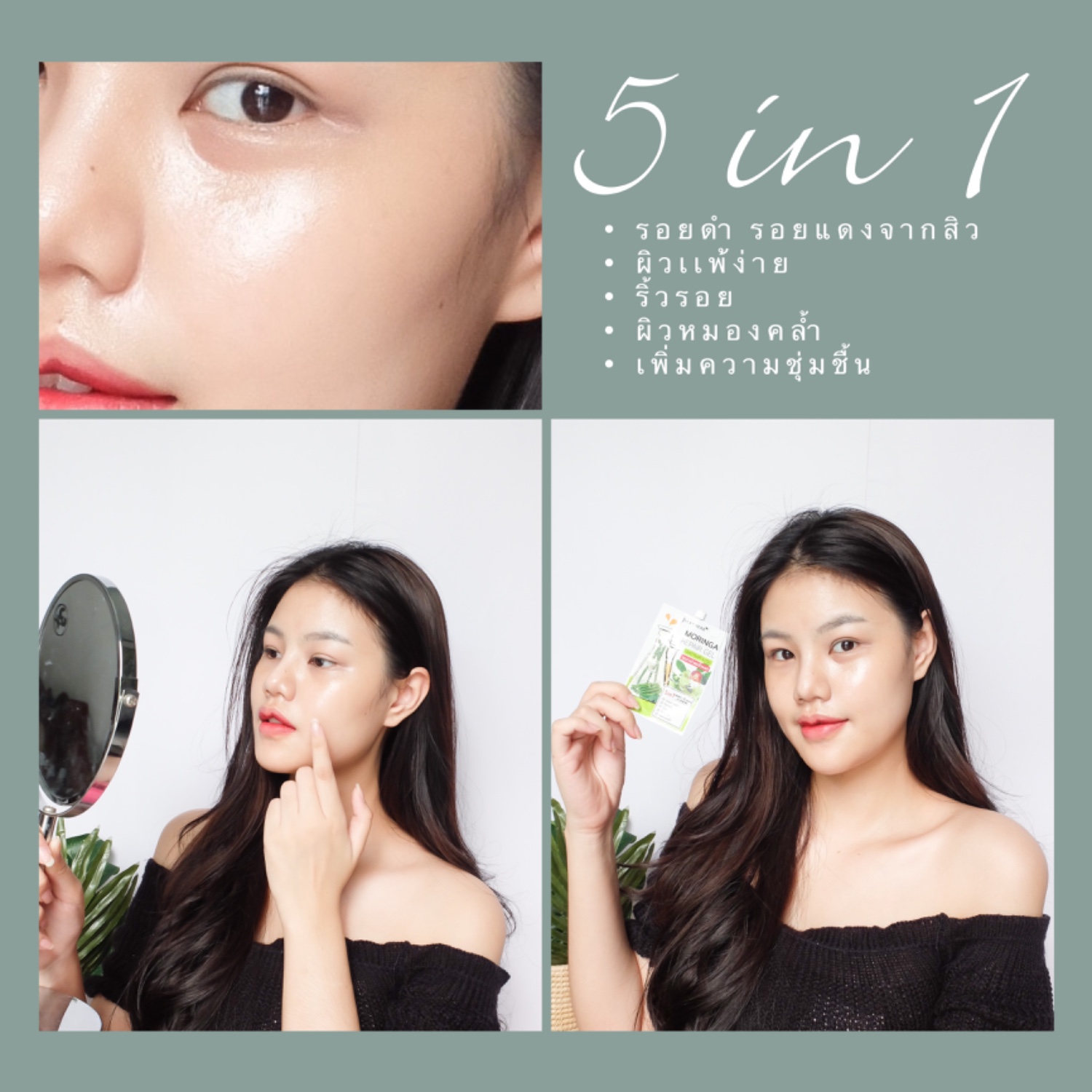 • มีสารสกัดจากมะรุม ที่ช่วยต่อต้านอนุมูลอิสระ เเละช่วยลดเลือนจุดด่างดำ จากรอยดำรอยแดงของสิว ใครที่มีรอยดำจากสิวนี่ต้องรีบใช้เลยค่ะ เพราะตัวนี้จะไปช่วยผลัดเซลล์ผิว บำรุงผิวให้ชุ่มชื้น ช่วยให้ผิวหน้าเรียบเนียน กระจ่างใส