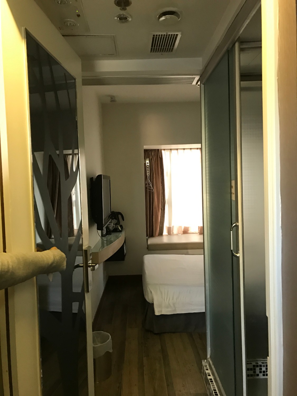เดินอีกประมาณ 5 นาทีก็จะถึงโรงแรมที่จองไว้ค่ะ คือโรงแรม M1 Hotel Hong Kong อยู่ใกล้ๆสถานี Yau Ma Tai เราจองไป 9 ห้องค่ะ แต่ว่าไม่ได้อยู่ชั้นเดียวกันทั้งหมดนะคะ แยกๆชั้นกันค่ะ แต่ห้อง type เดียวกัน ห้องค่อนข้างแคบค่ะ แต่ว่าแค่ซุกหัวนอนก็พอได้อยู่ค่ะ
