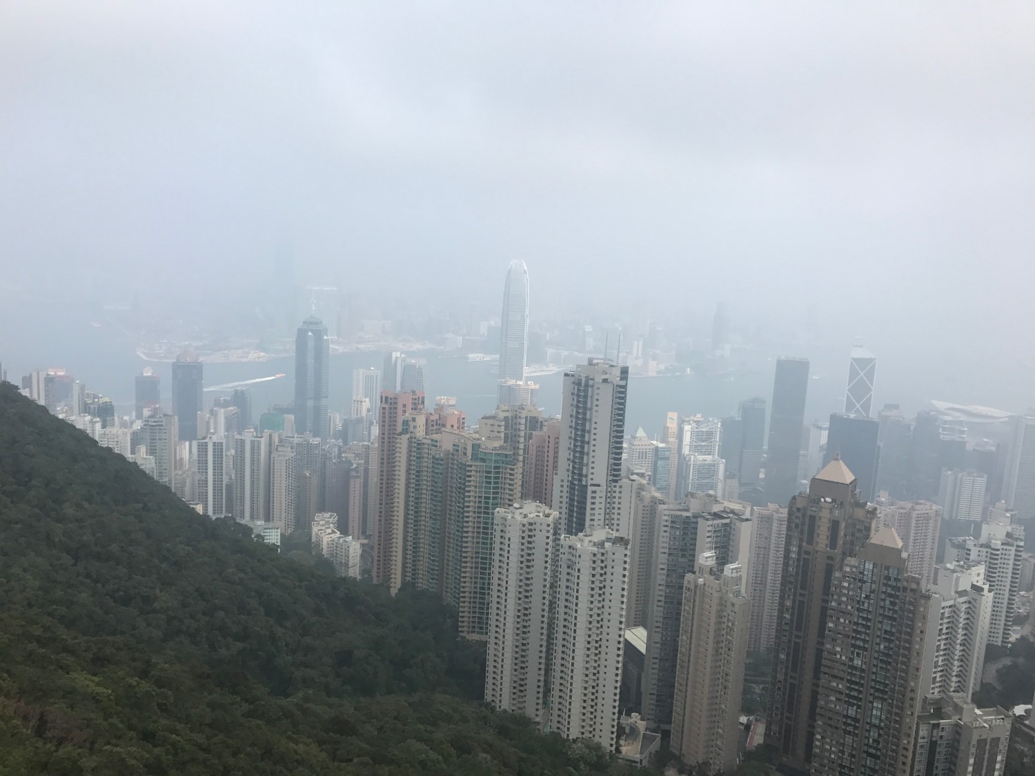 ถึงแล้วค่ะ The Peak Tower วิวสวยมาก ลมแรงมากเช่นกันค่ะ