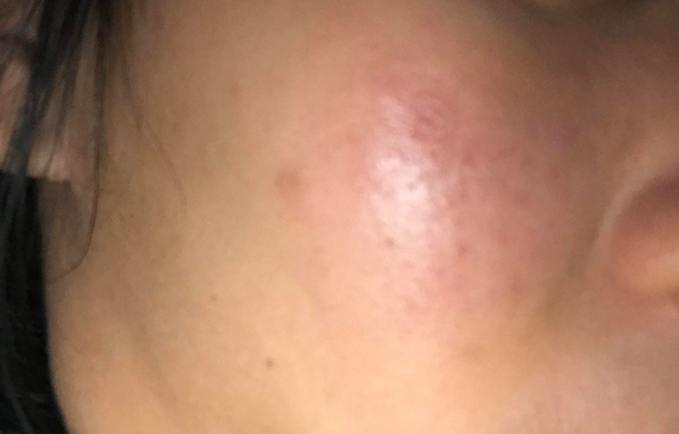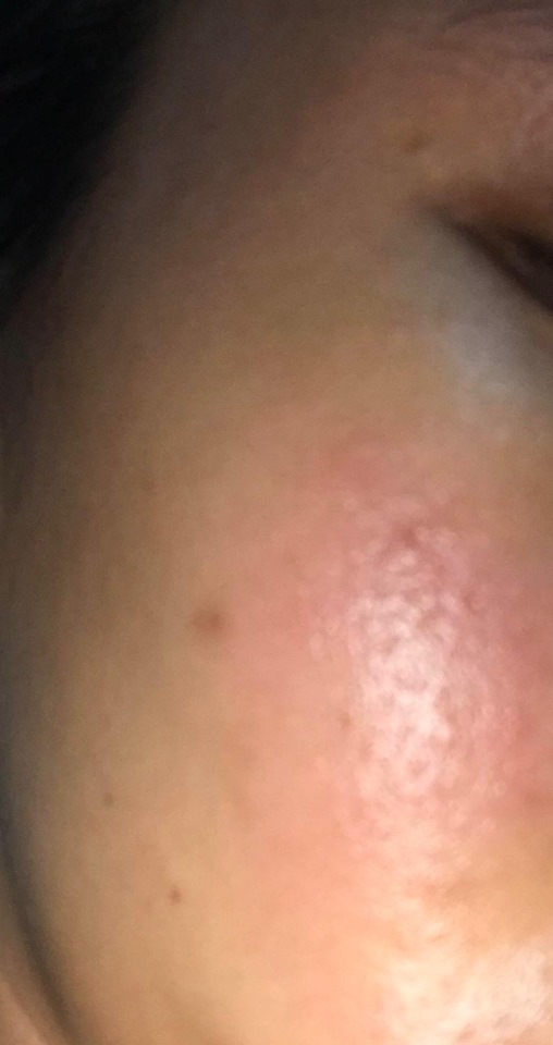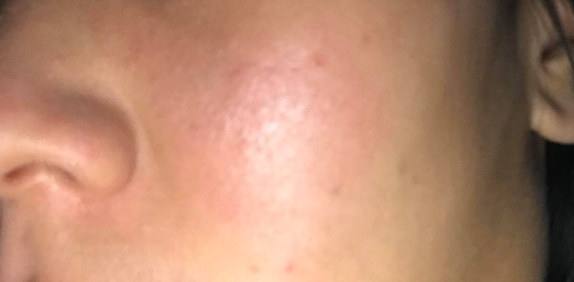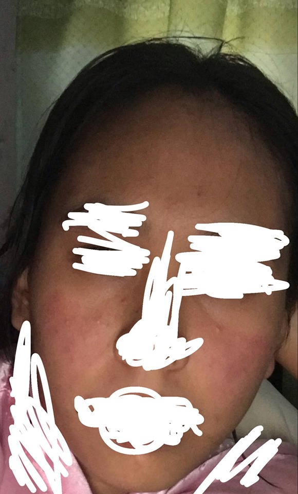 ละไม่รู้ด้วยว่าผื่นเริ่มเป็นตั้งแต่ตอนไหน คือเคยไปเดินพาเหรดตอนกีฬาสี รู้สึกว่าน่าจะเป็นหลังจากนั้นที่เริ่มลอกที่แก้ม ละกลายเป็นผื่นแดง