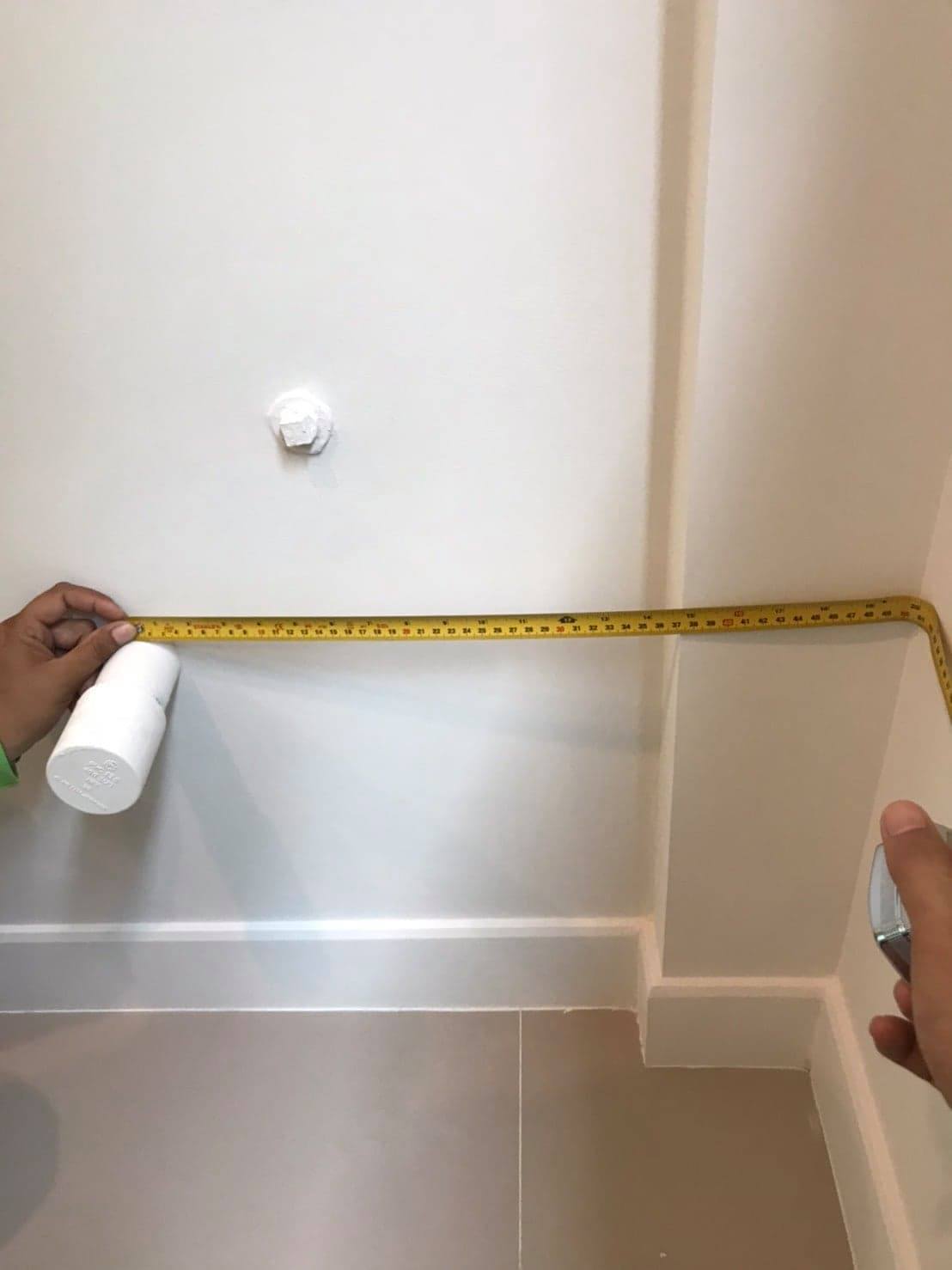 ท่อน้ำทิ้งเดิมระยะห่างจากผนังฝั่งหน้าต่าง 50 cm ครับ