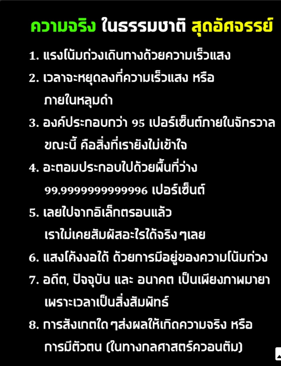 อยากทราบว่าข้อ 7.อดีต ปัจจุบัน และ อนาคต ล้วนเป็นภาพมายา เพราะเวลาคือสิ่งสัมพัทธ์ เป็นจริงเท็จแค่ไหนครับ