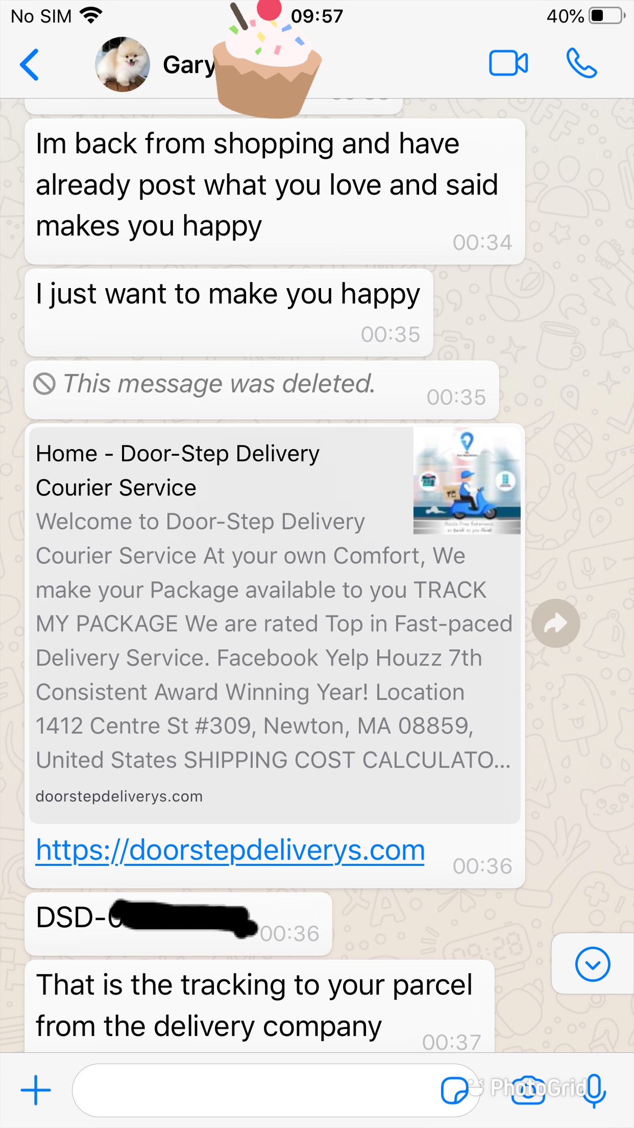 ในใจเราก็คิดว่า "เริ่มแล้วไงๆ" เราก็แกล้งให้ที่อยู่ไป นางก็รีบไปซื้อของขวัญส่งมาให้กับเรา มีtracking IDด้วยจ๊ะ จะได้ติดตามพัสดุได้