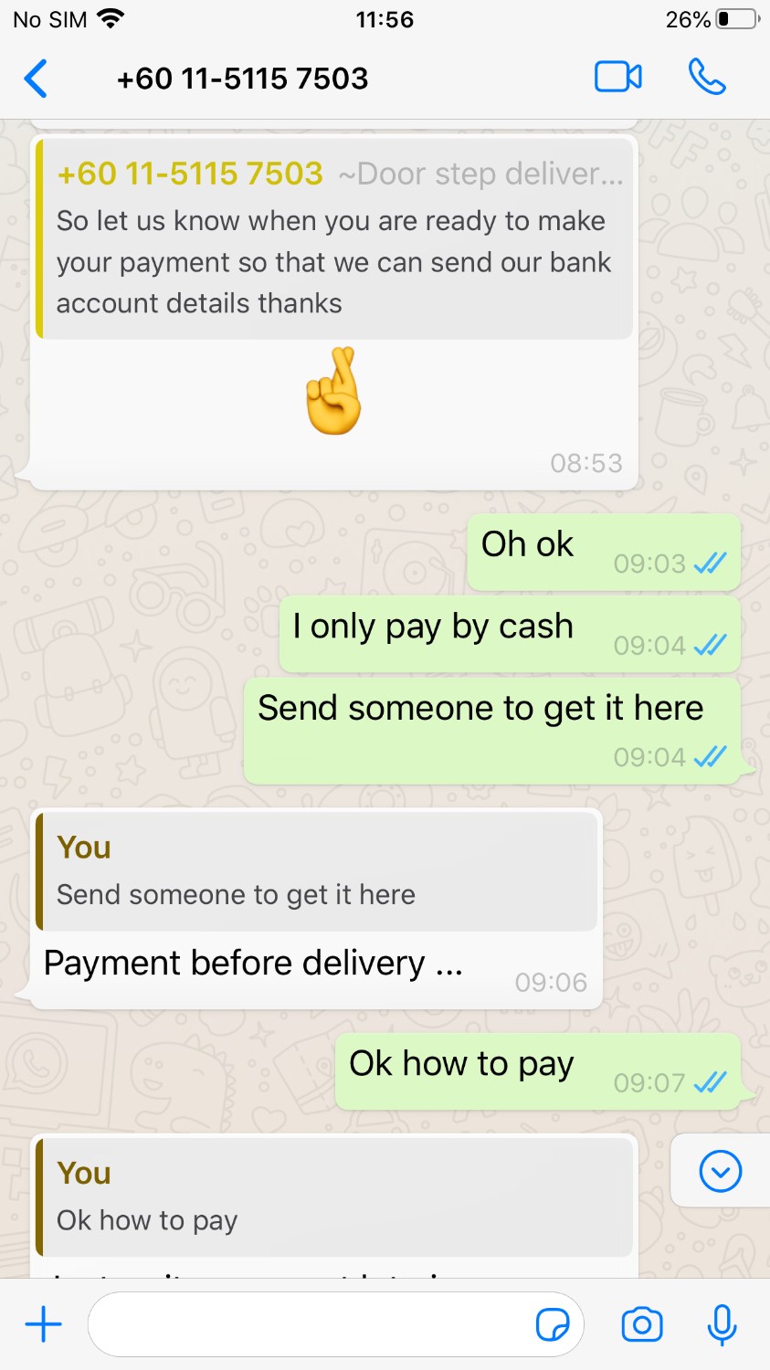 ผ่านไป3วัน ก็มีเจ้าหน้าที่จากบริษัทขนส่งติดต่อมาทางWhatsappเป็นภาษาอังกฤษ