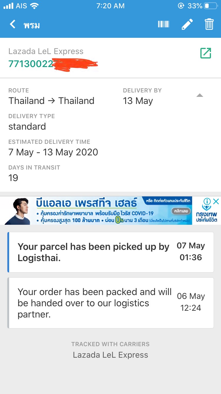 สั่งของทางLazada ส่งผ่านLogisthai เลยกำหนดส่ง แต่ยังไม่ได้ของ